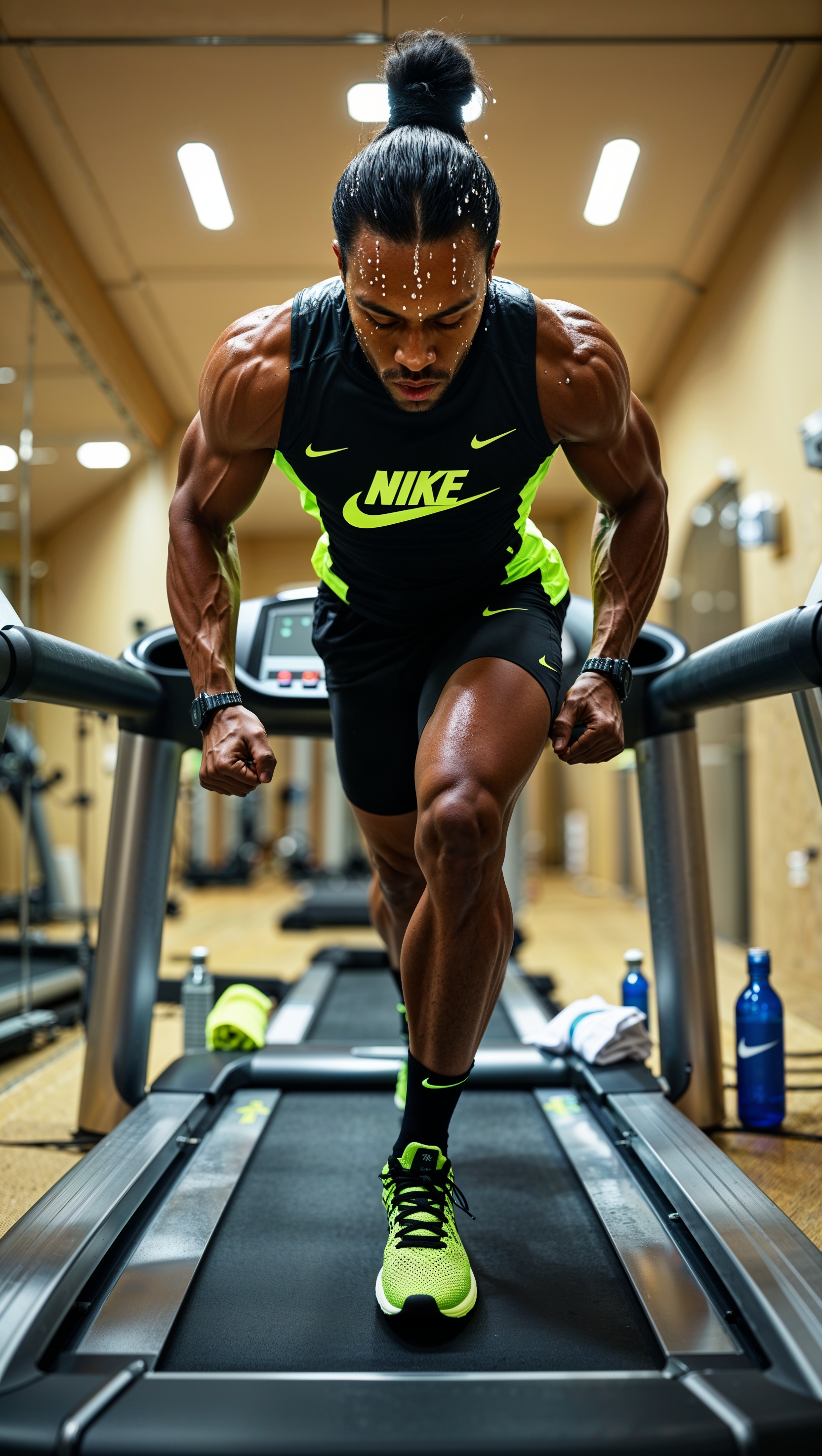 Create a 4K image of an athlete training with Nike gear in a gym for an iPhone 1664x2944 Create a 4K image of an athlete training with Nike gear in a gym for an iPhone