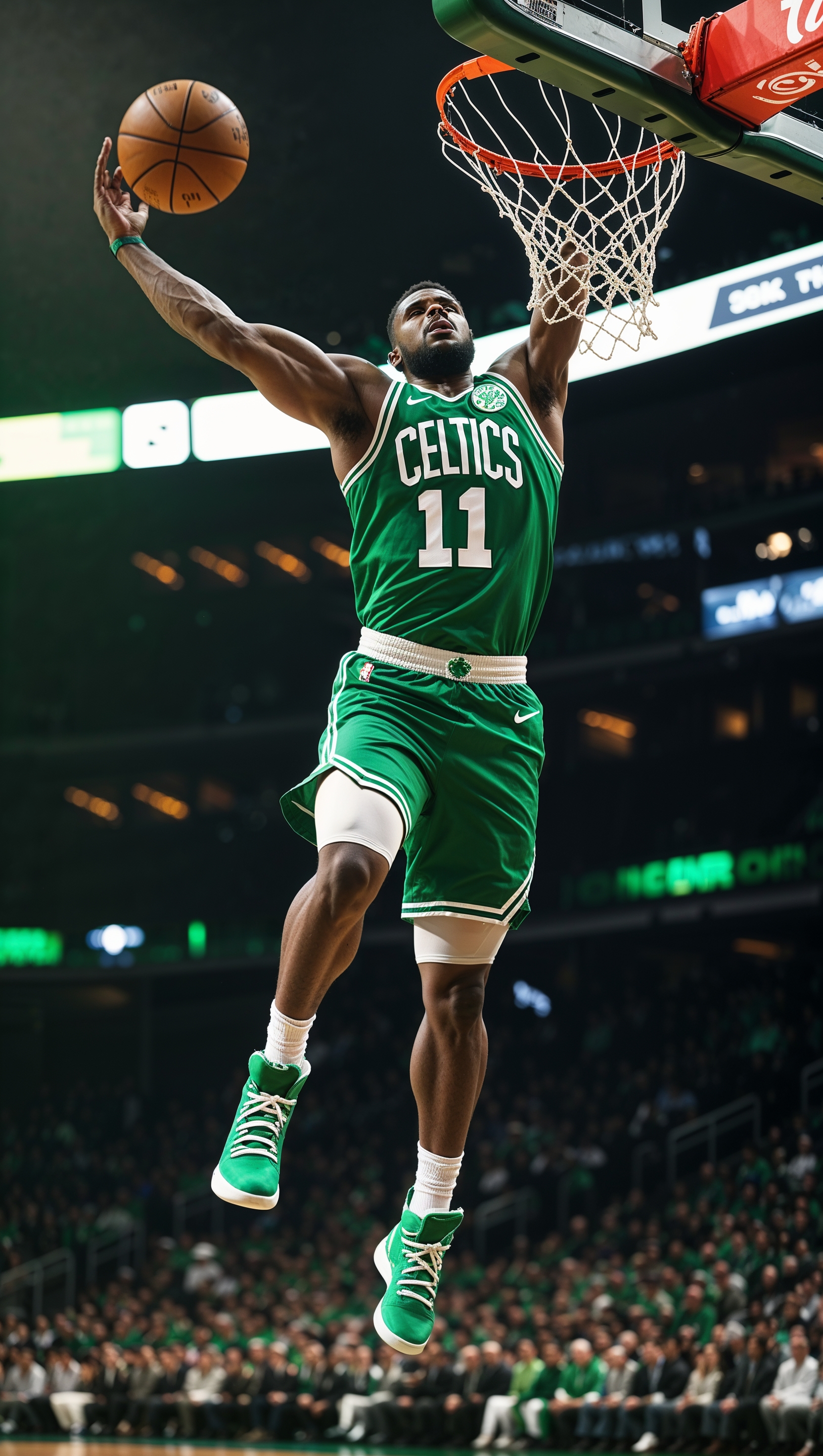 1664x2944 Jayson Tatum dunking with neon lights – perfect for iPhone wallpaper