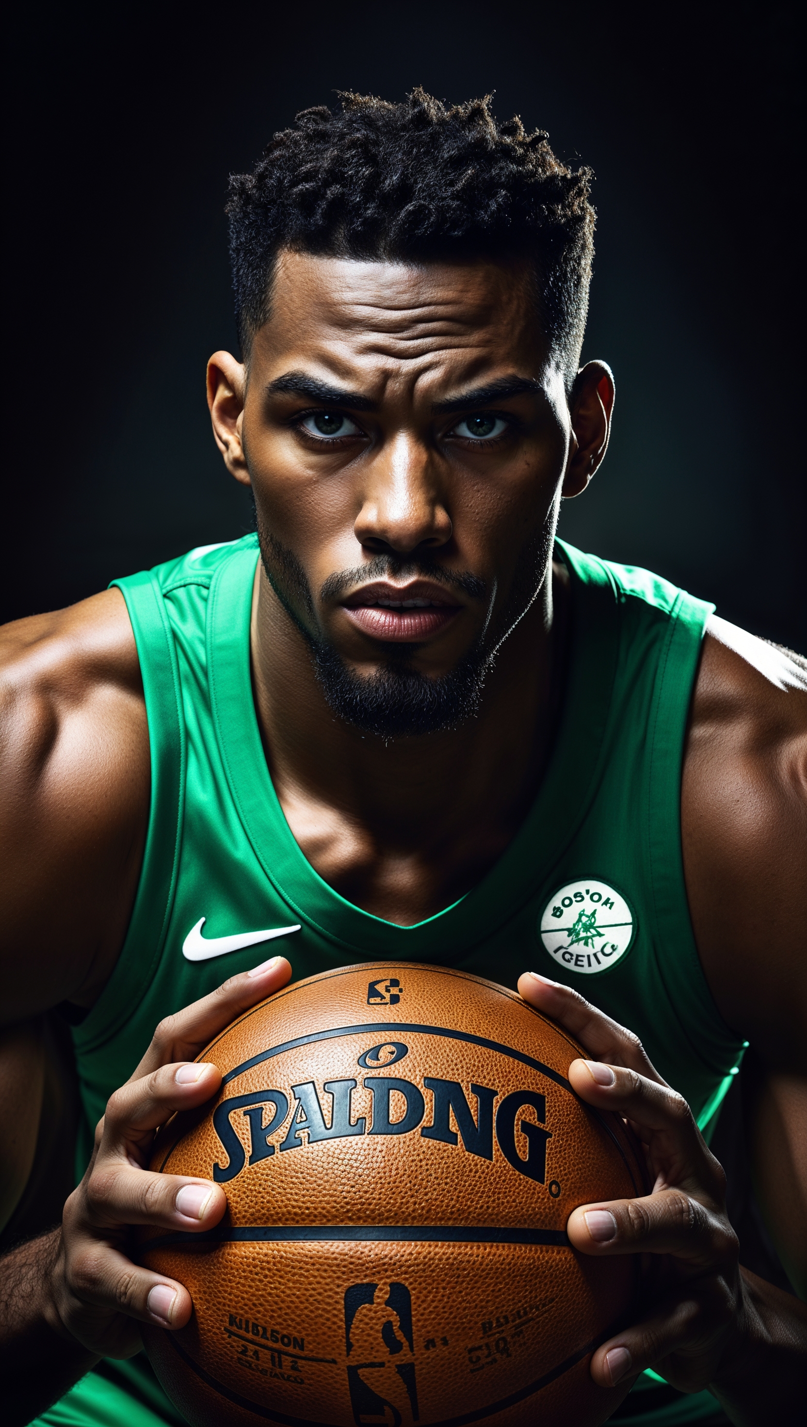 1664x2944 Jayson Tatum with a basketball in a dark, high-contrast background