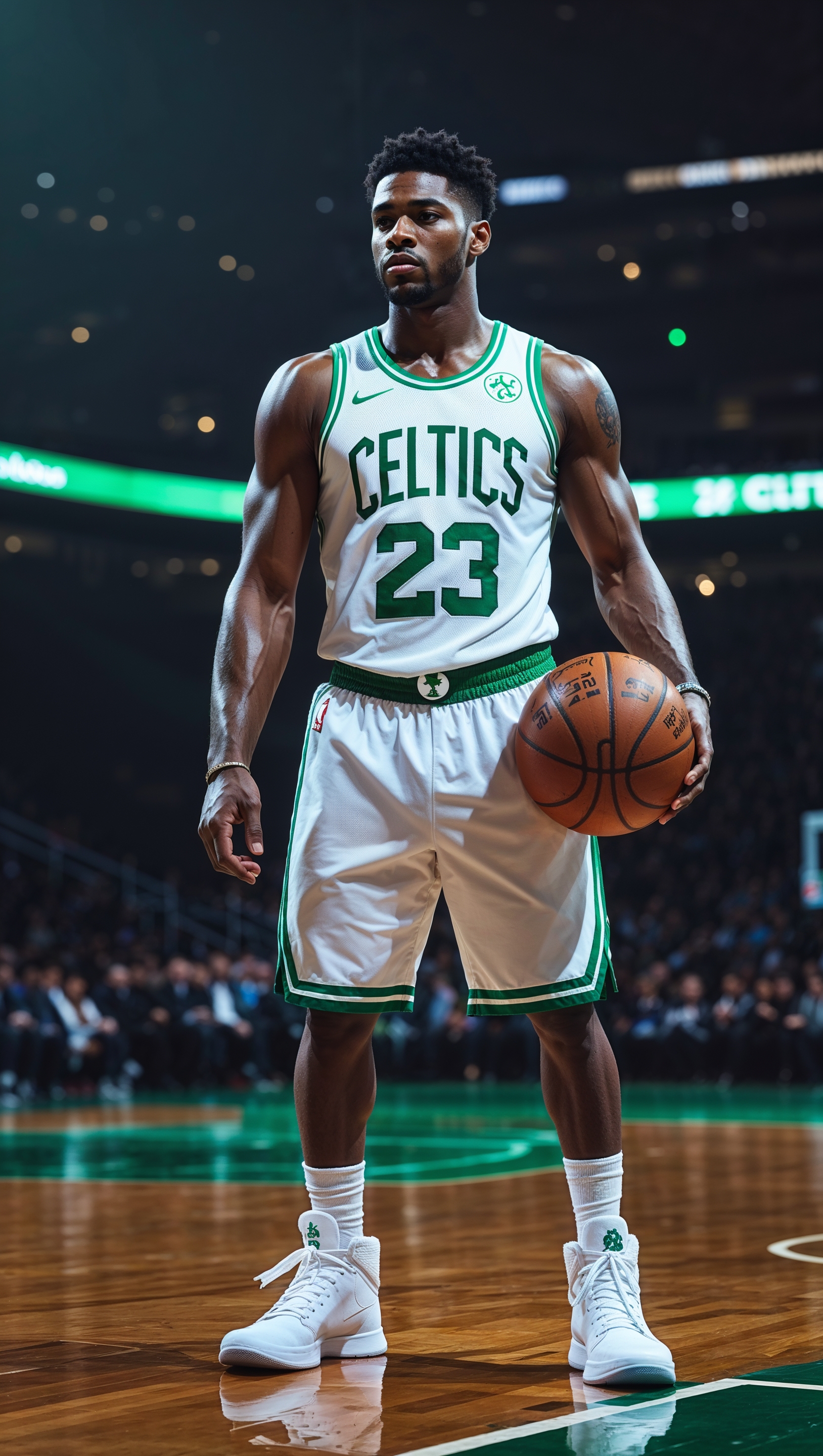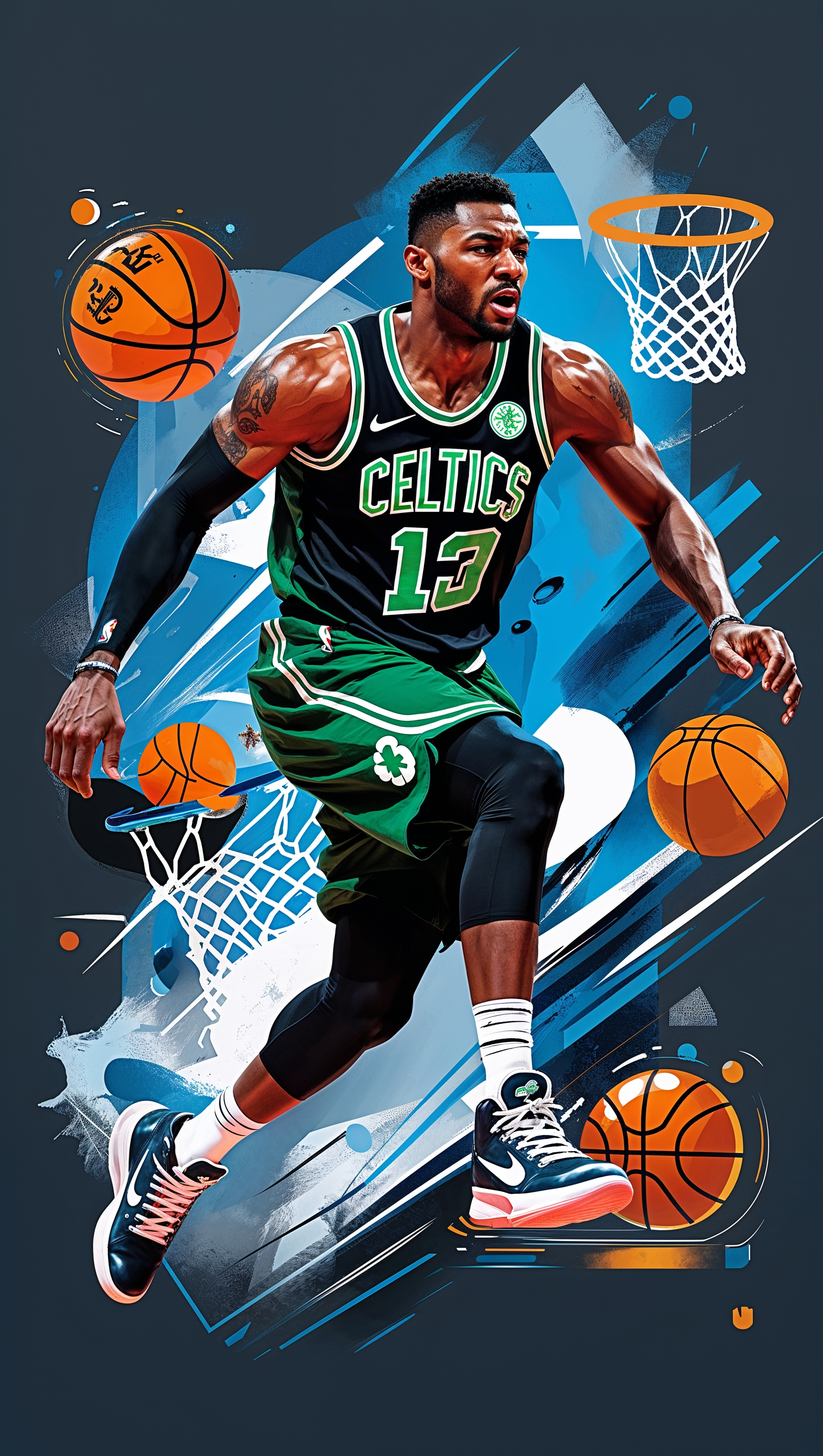 1664x2944 Artistic image of Jayson Tatum in Boston Celtics uniform on the court