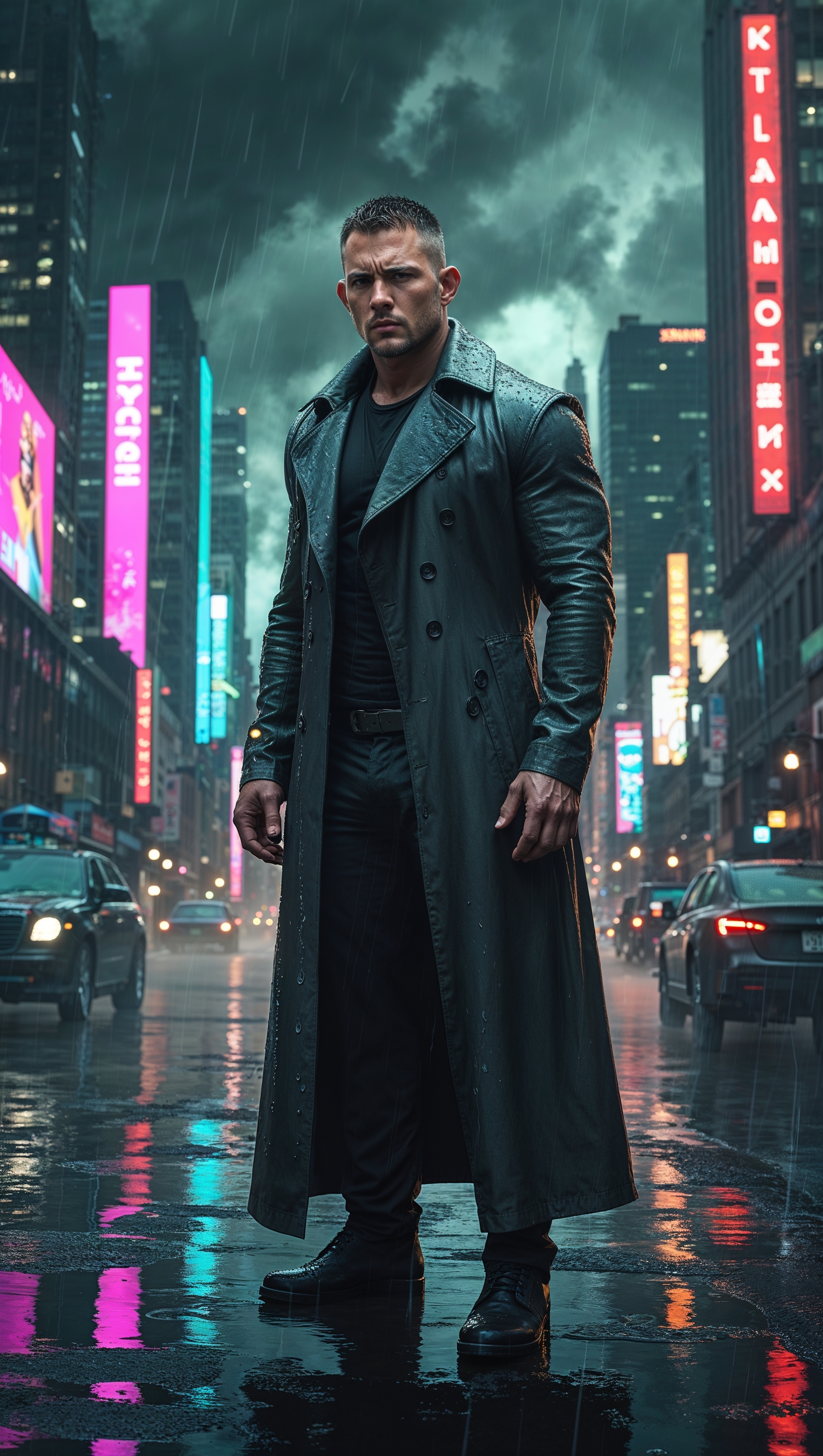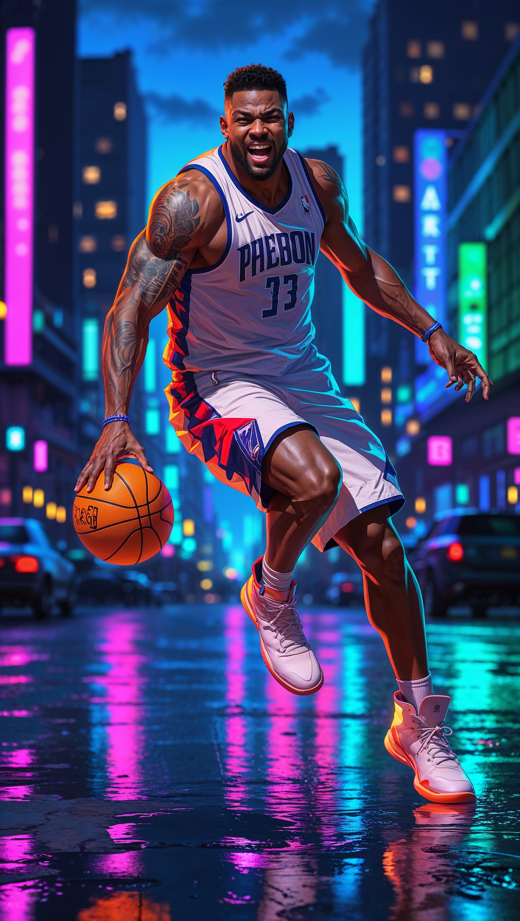 1664x2944 Cyberpunk-style art of Jayson Tatum on a rainy neon-lit night