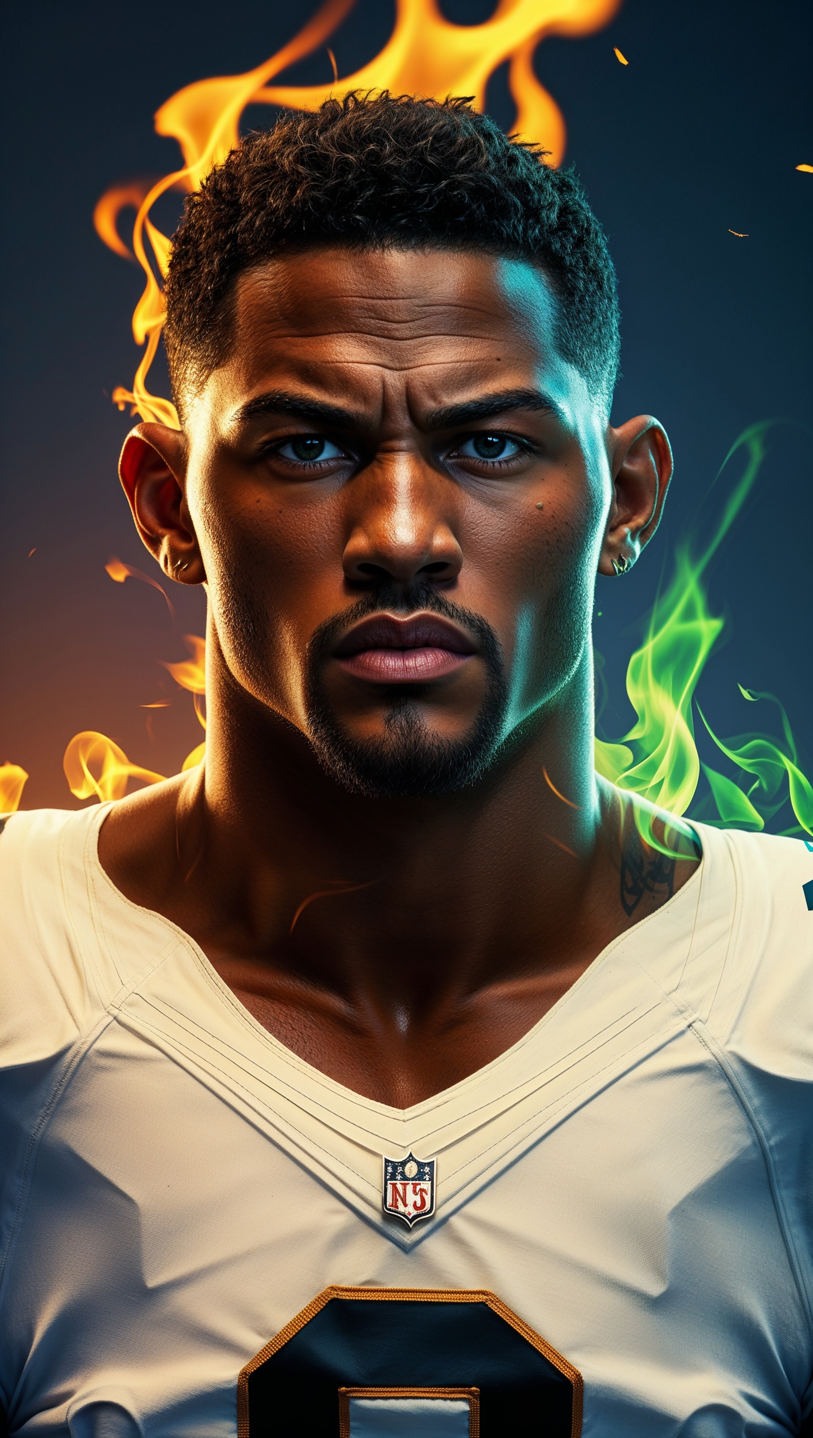 1664x2944 Jayson Tatum surrounded by green flames with a determined look