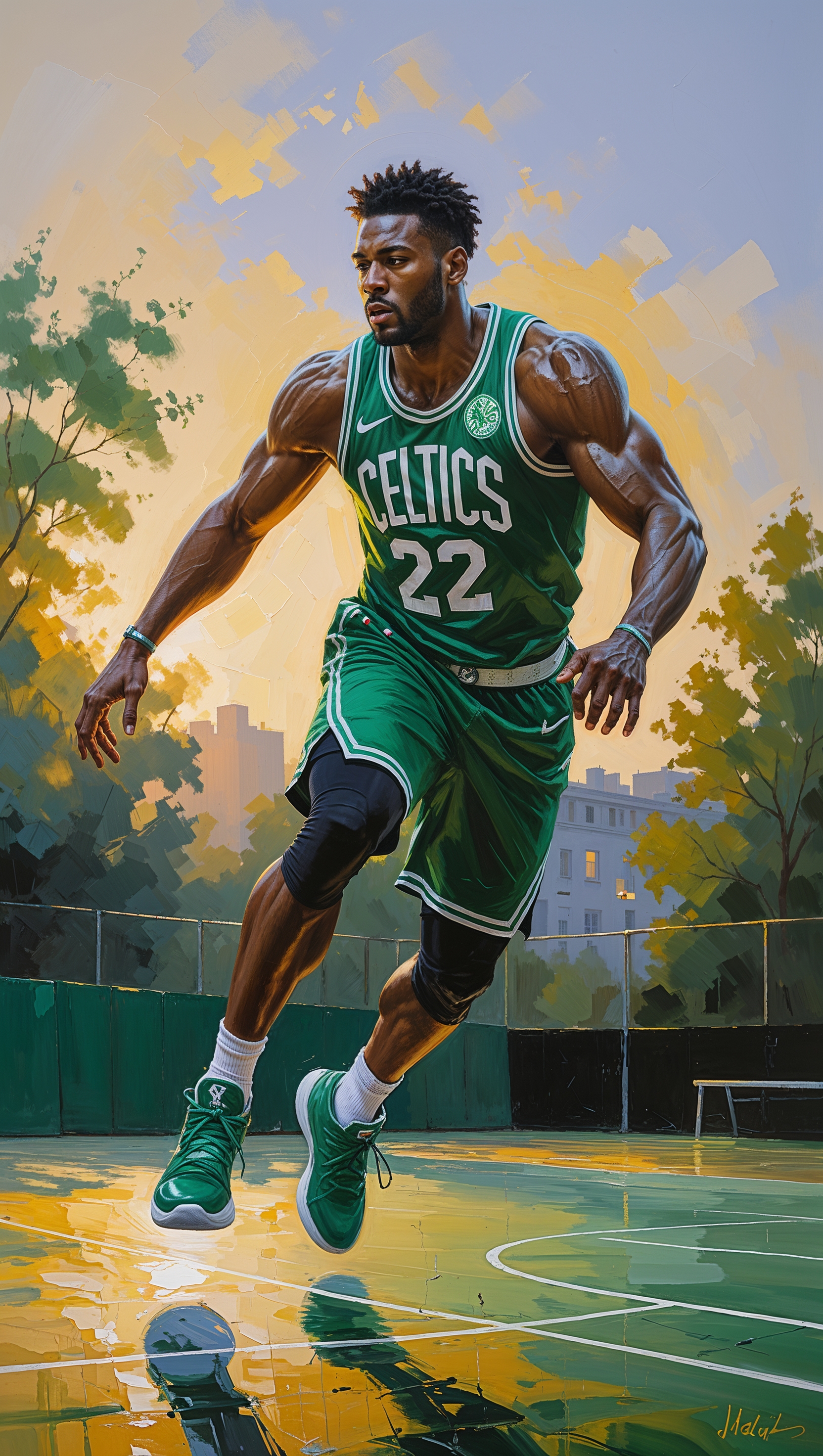 1664x2944 Oil painting of Jayson Tatum training at sunrise