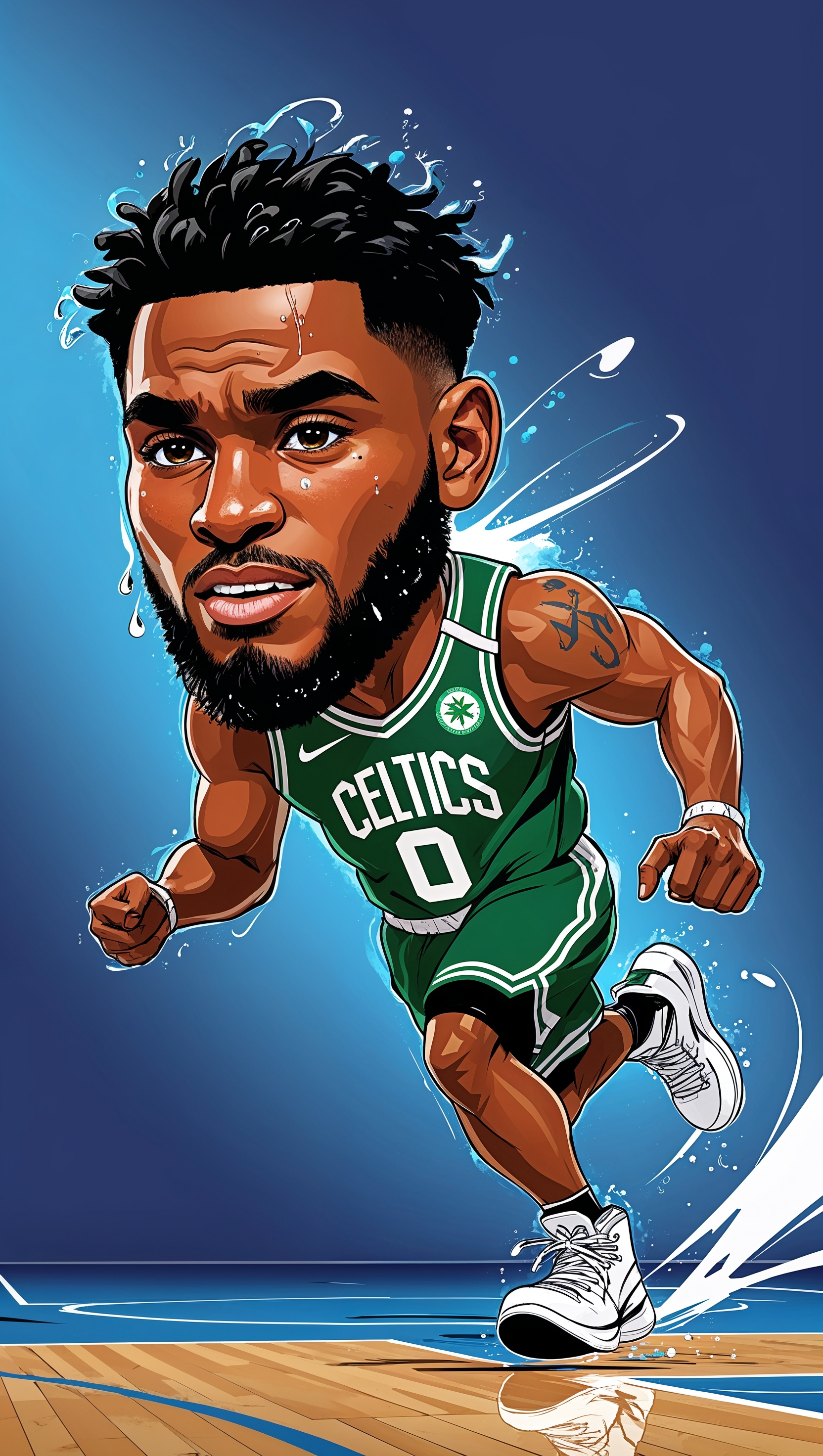 1664x2944 Cartoon background of Jayson Tatum running on the court