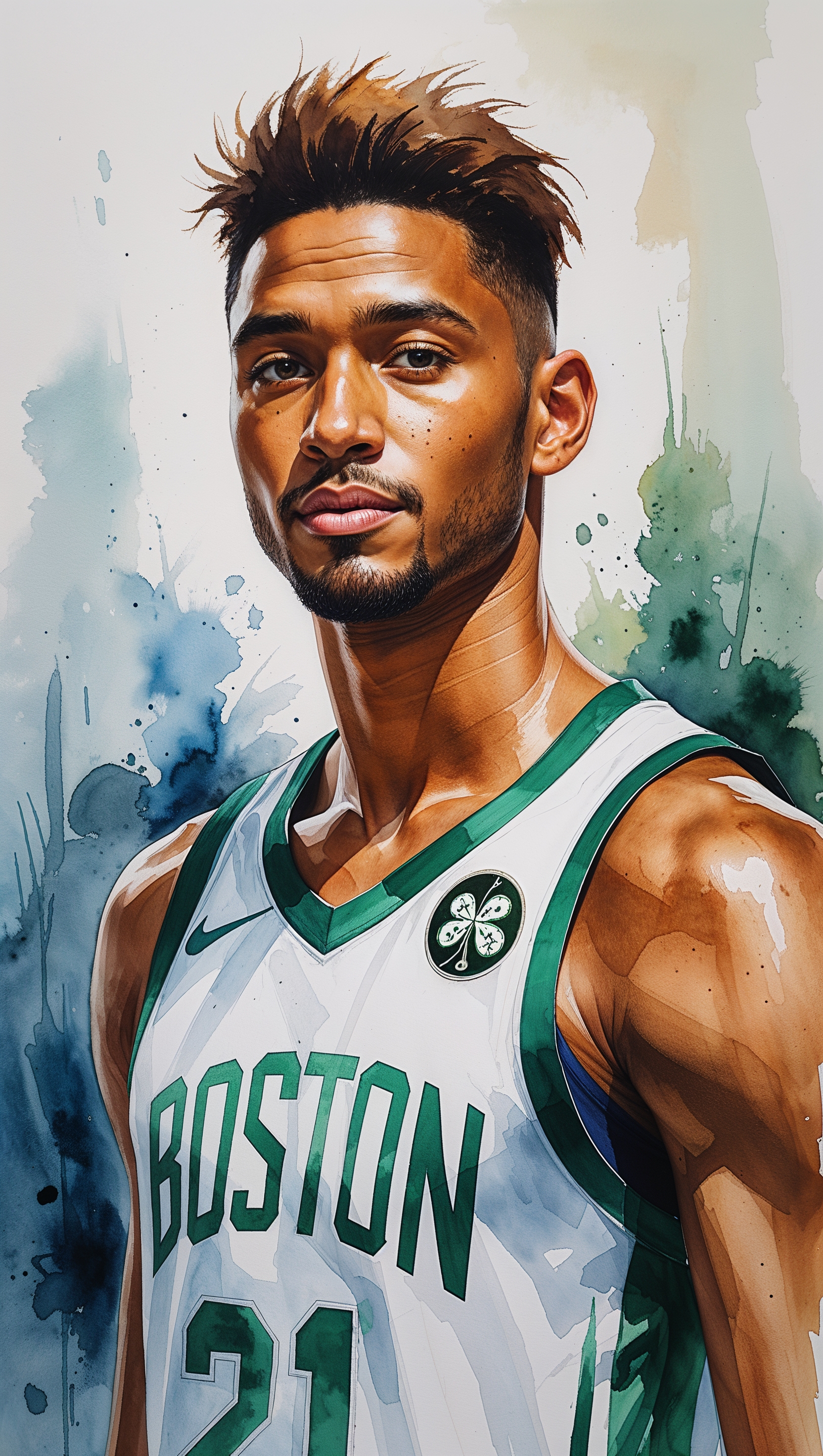 1664x2944 Watercolor painting of Jayson Tatum with a calm background