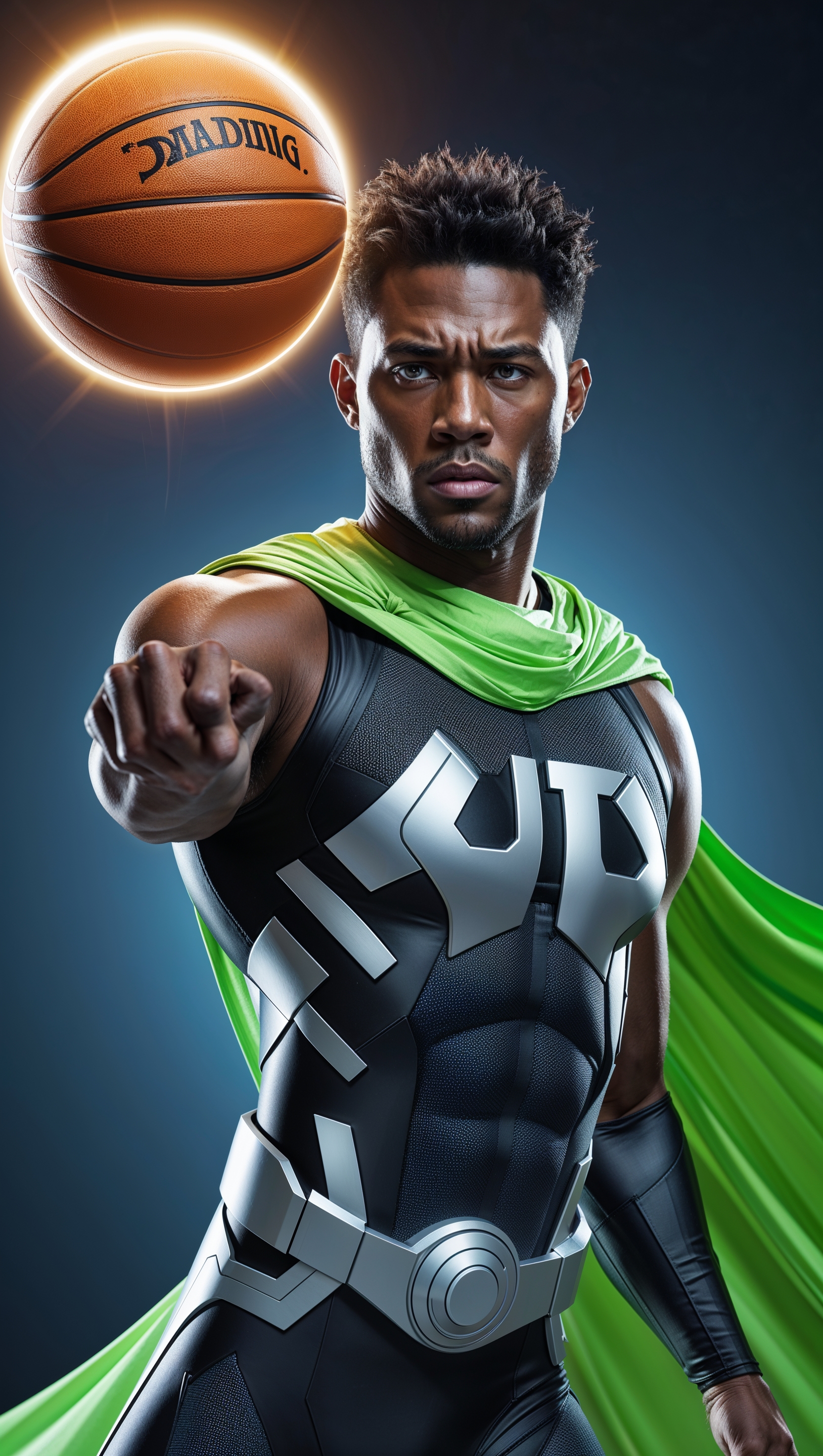 1664x2944 Superhero-style Jayson Tatum with a green cape and glowing ball
