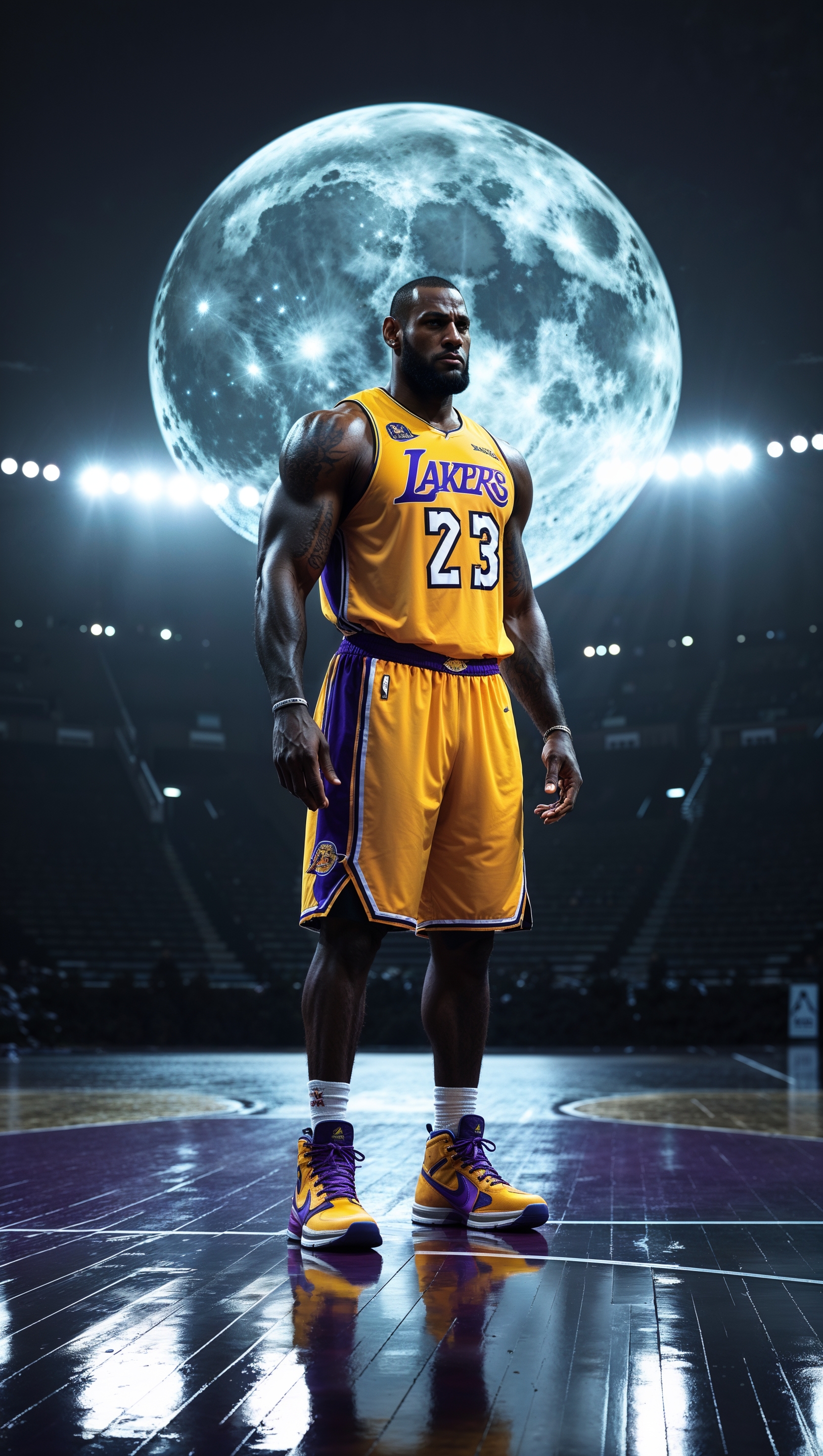 1664x2944 LeBron James in a Lakers jersey with a dark background