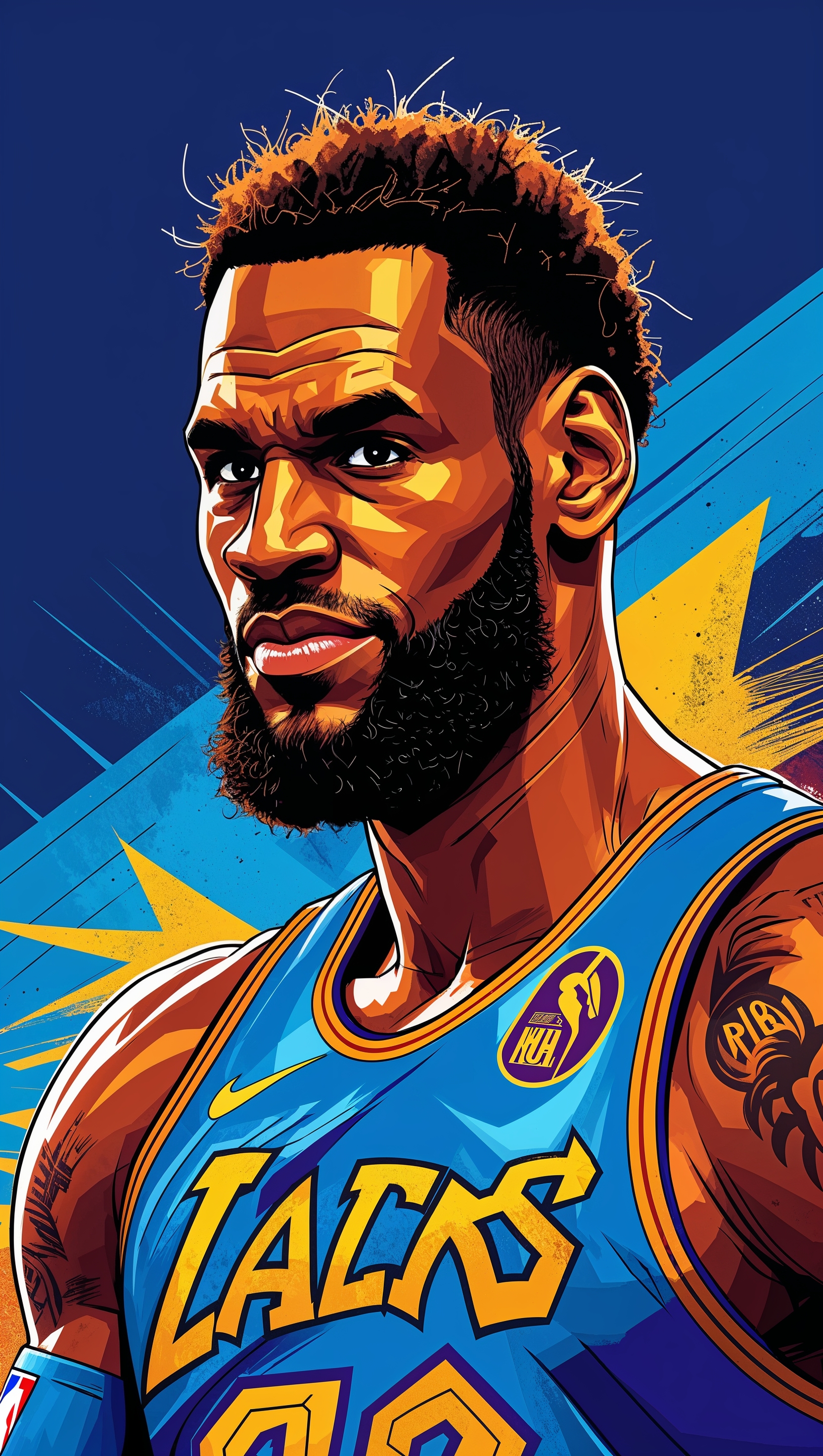 1664x2944 Cartoon illustration of LeBron James for phone wallpaper