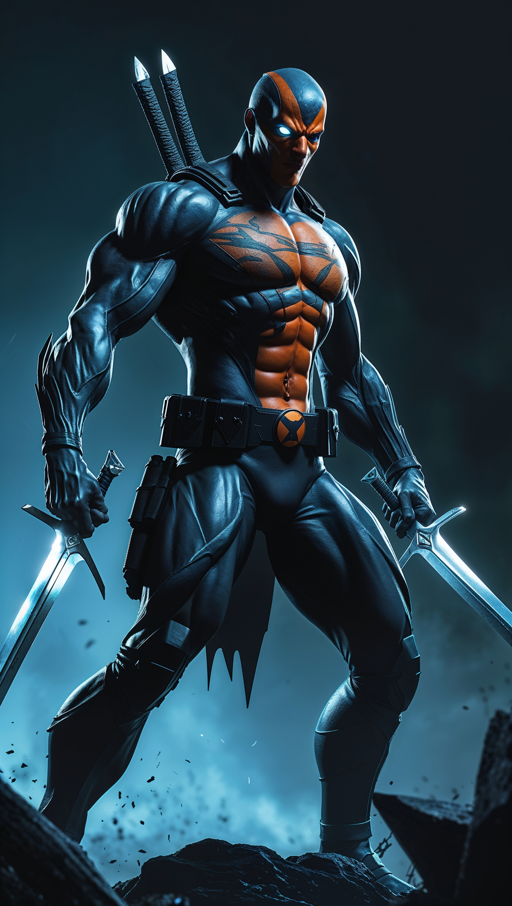 1664x2944 Deathstroke with swords in attack pose – dark theme