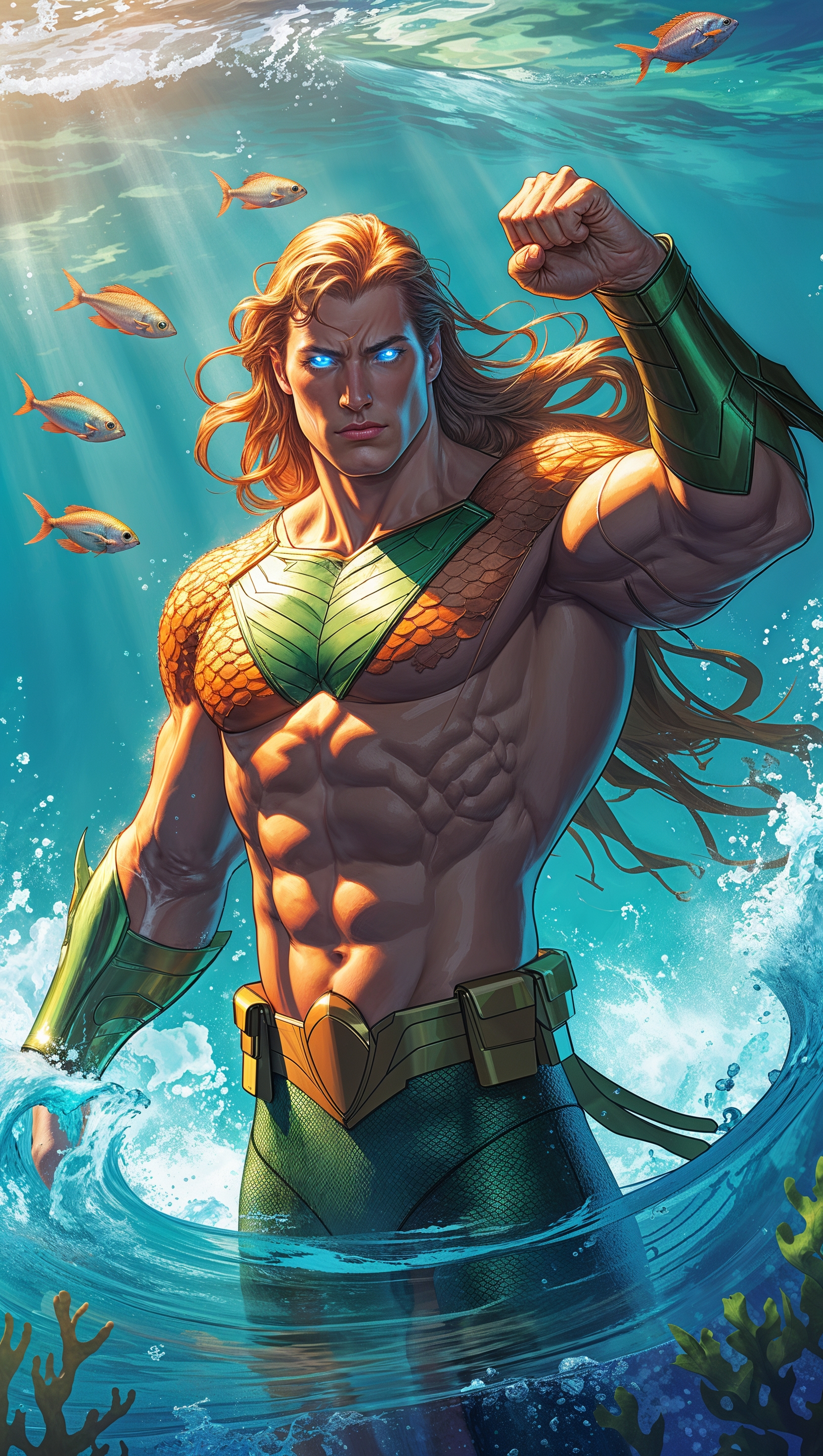 1664x2944 Aquaman underwater controlling waves – fantasy design