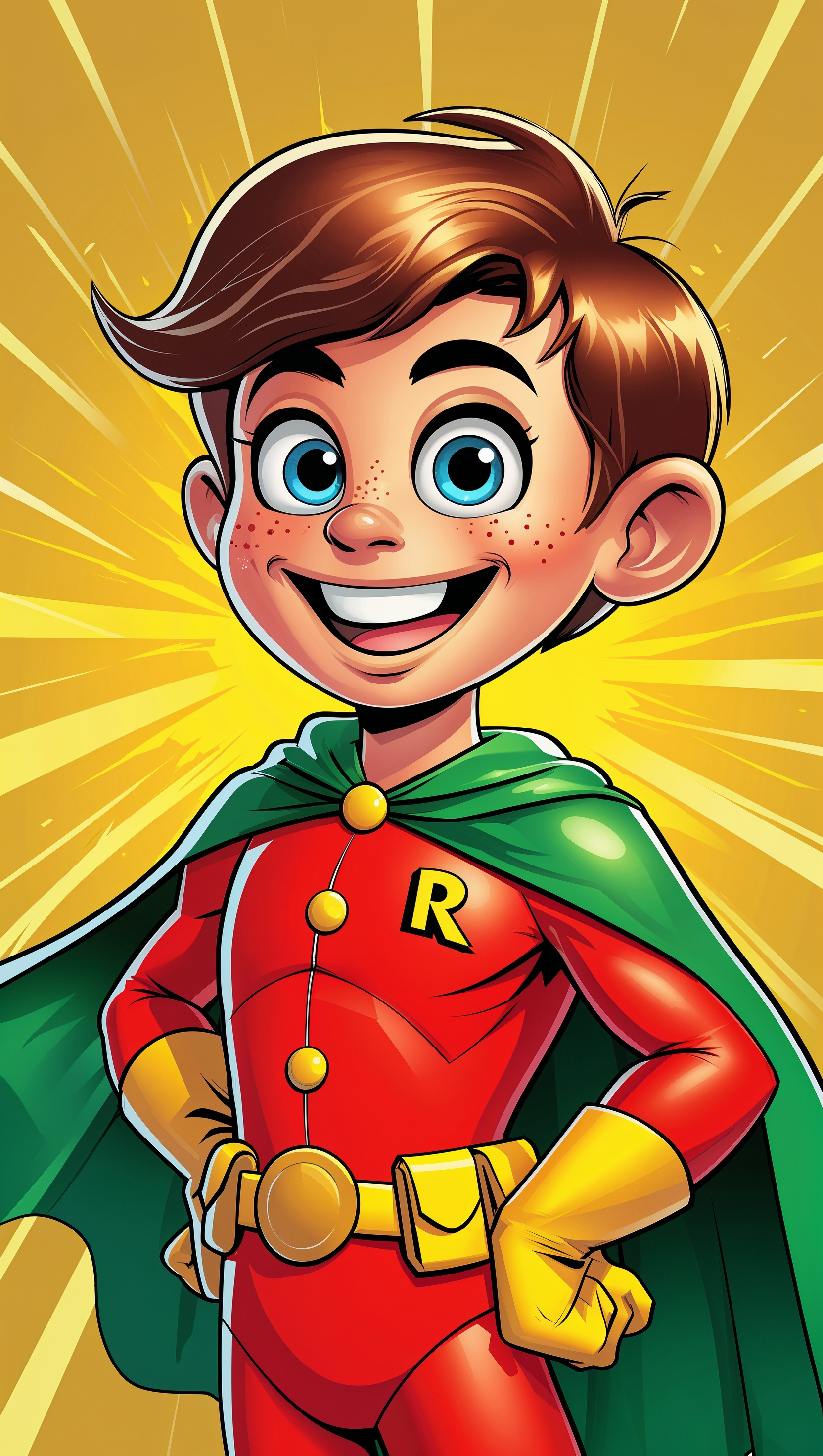 1664x2944 Robin in red and green outfit – cartoony and bright