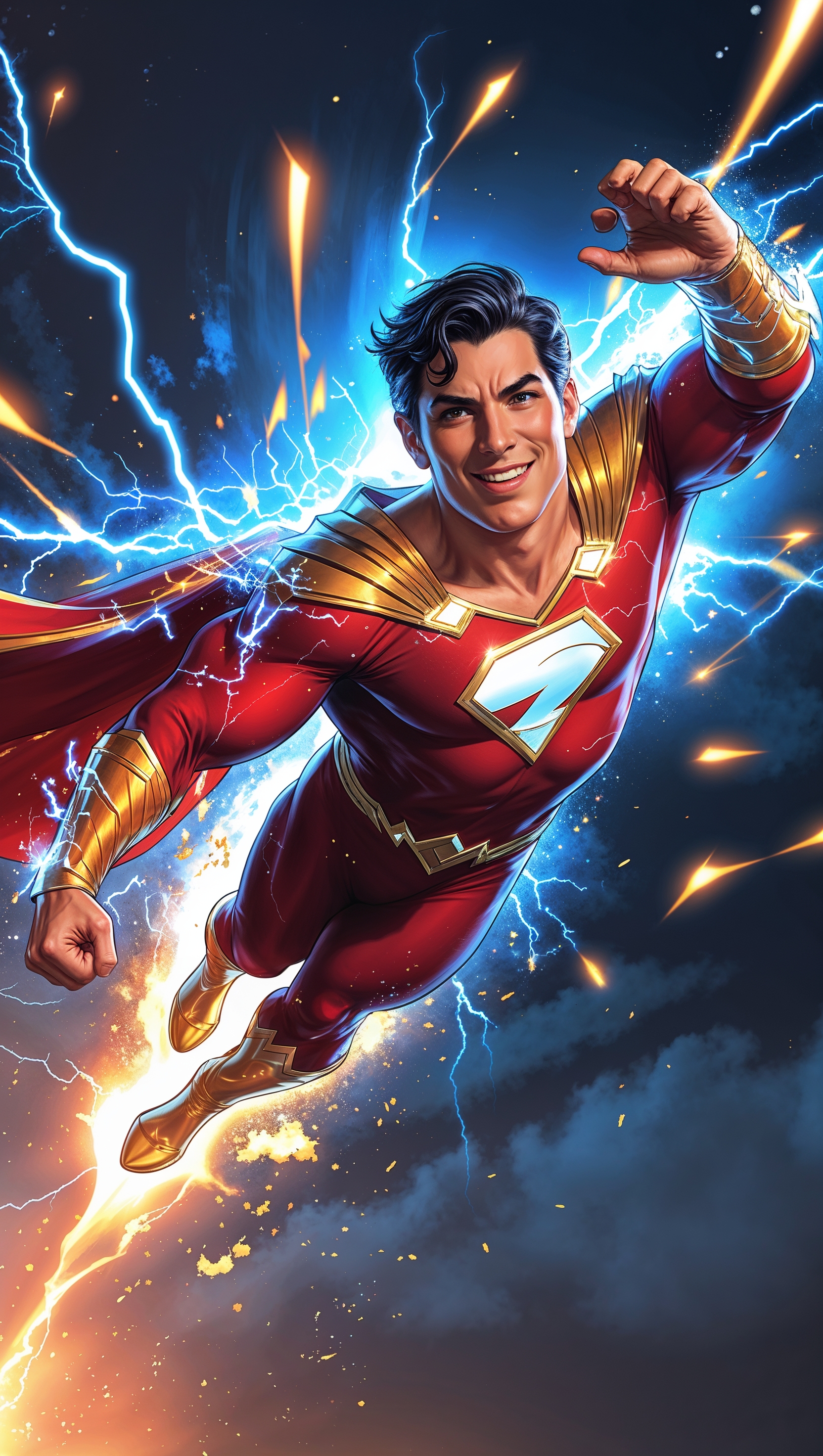 1664x2944 Shazam flying with electricity effects – dynamic and exciting