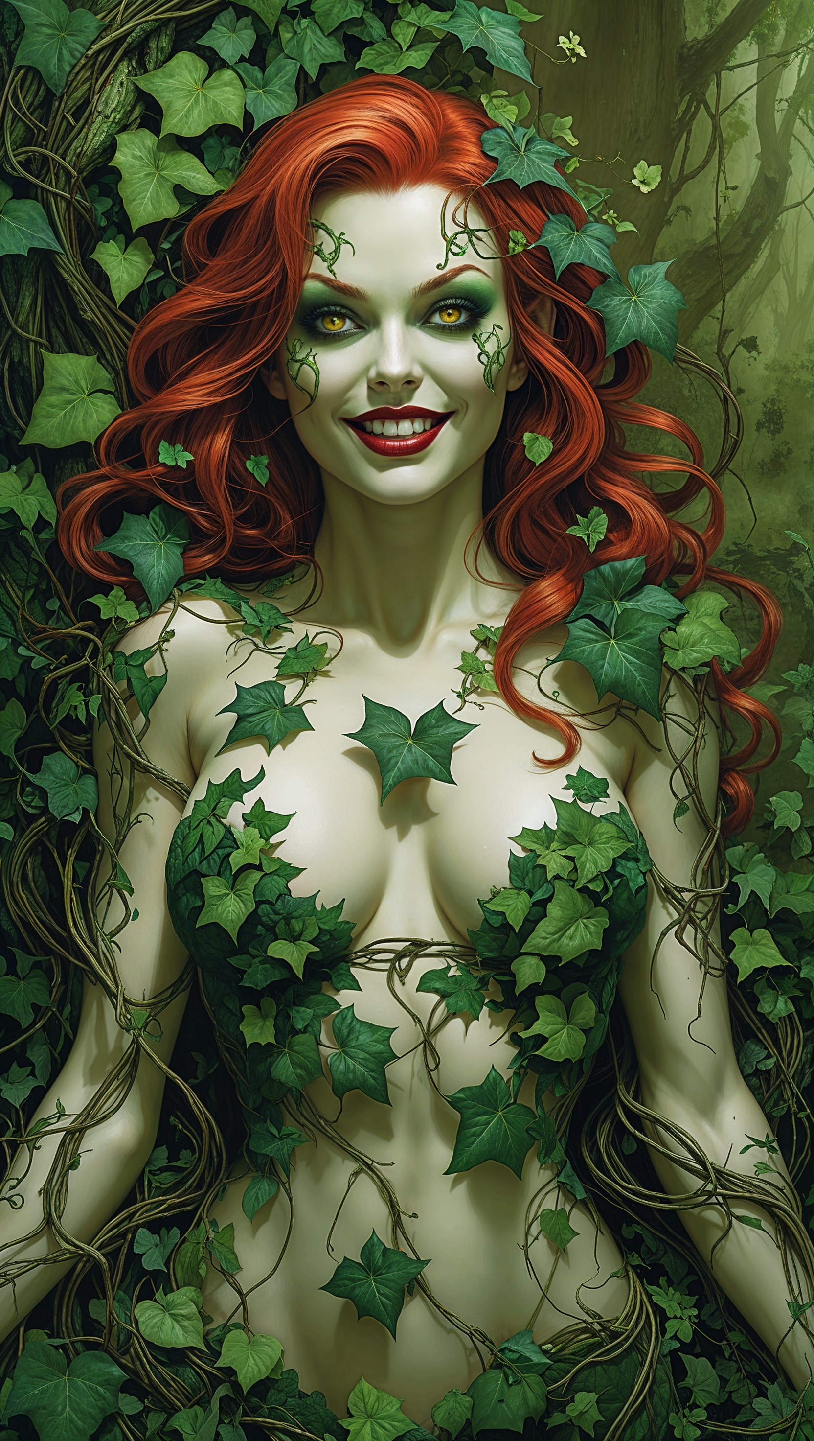 1664x2944 Poison Ivy surrounded by vines – green nature wallpaper