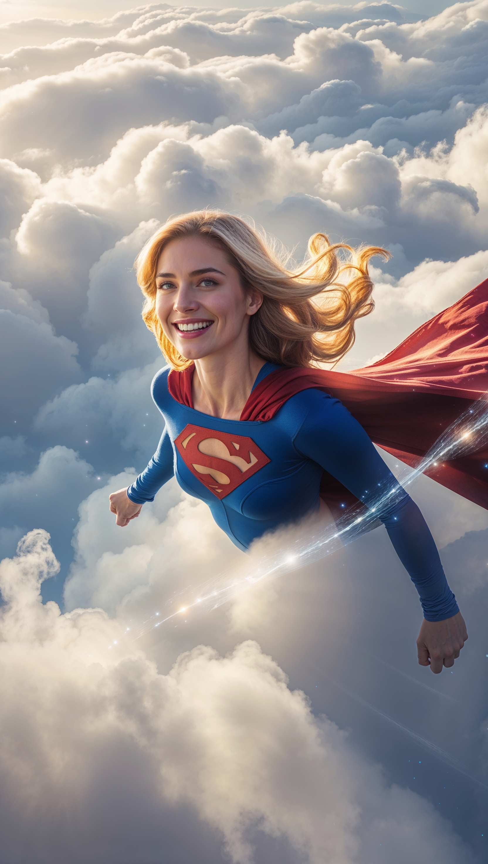 1664x2944 Supergirl flying through clouds – dreamy and soft