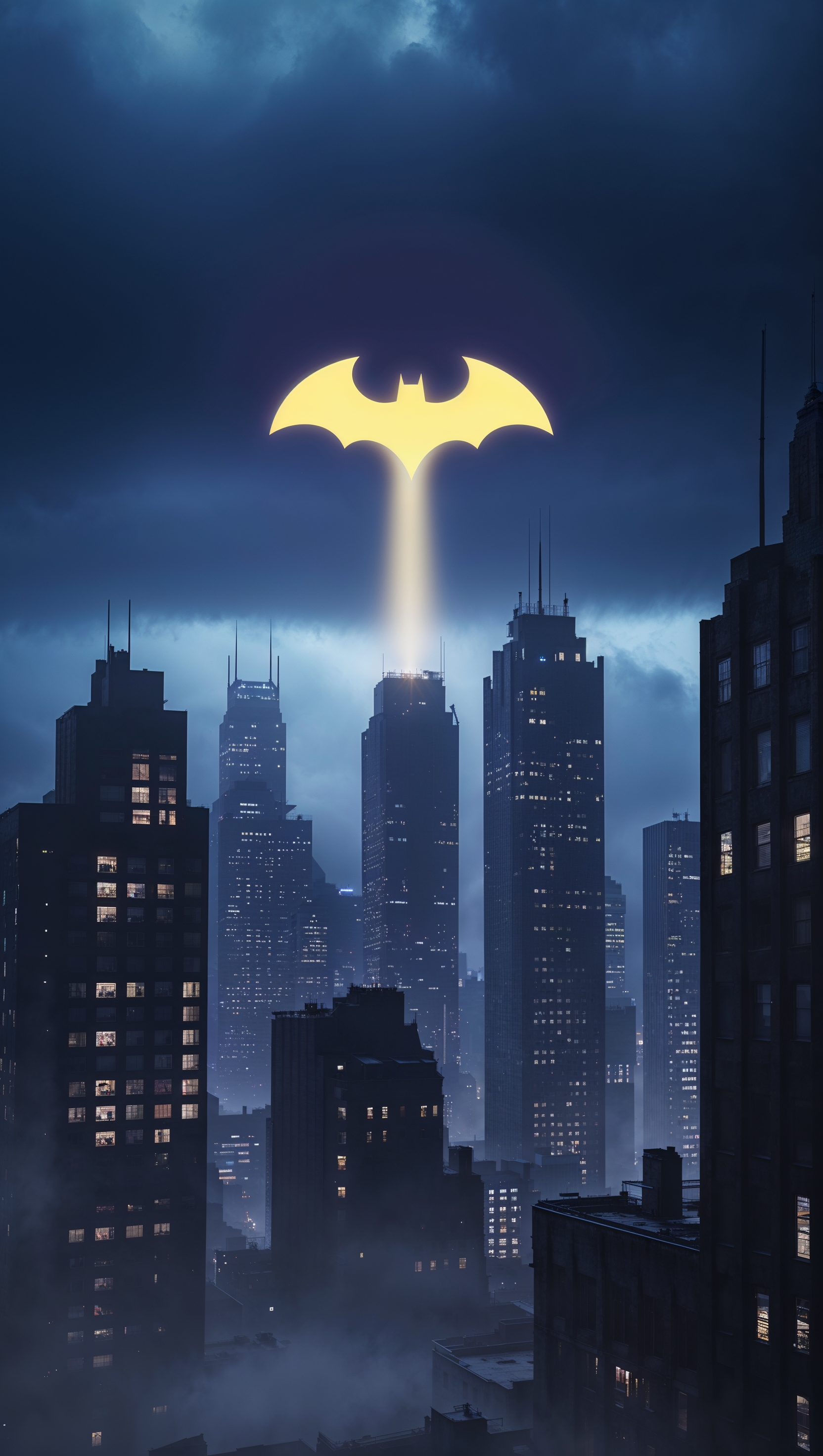 1664x2944 Gotham skyline with Bat-Signal in the sky