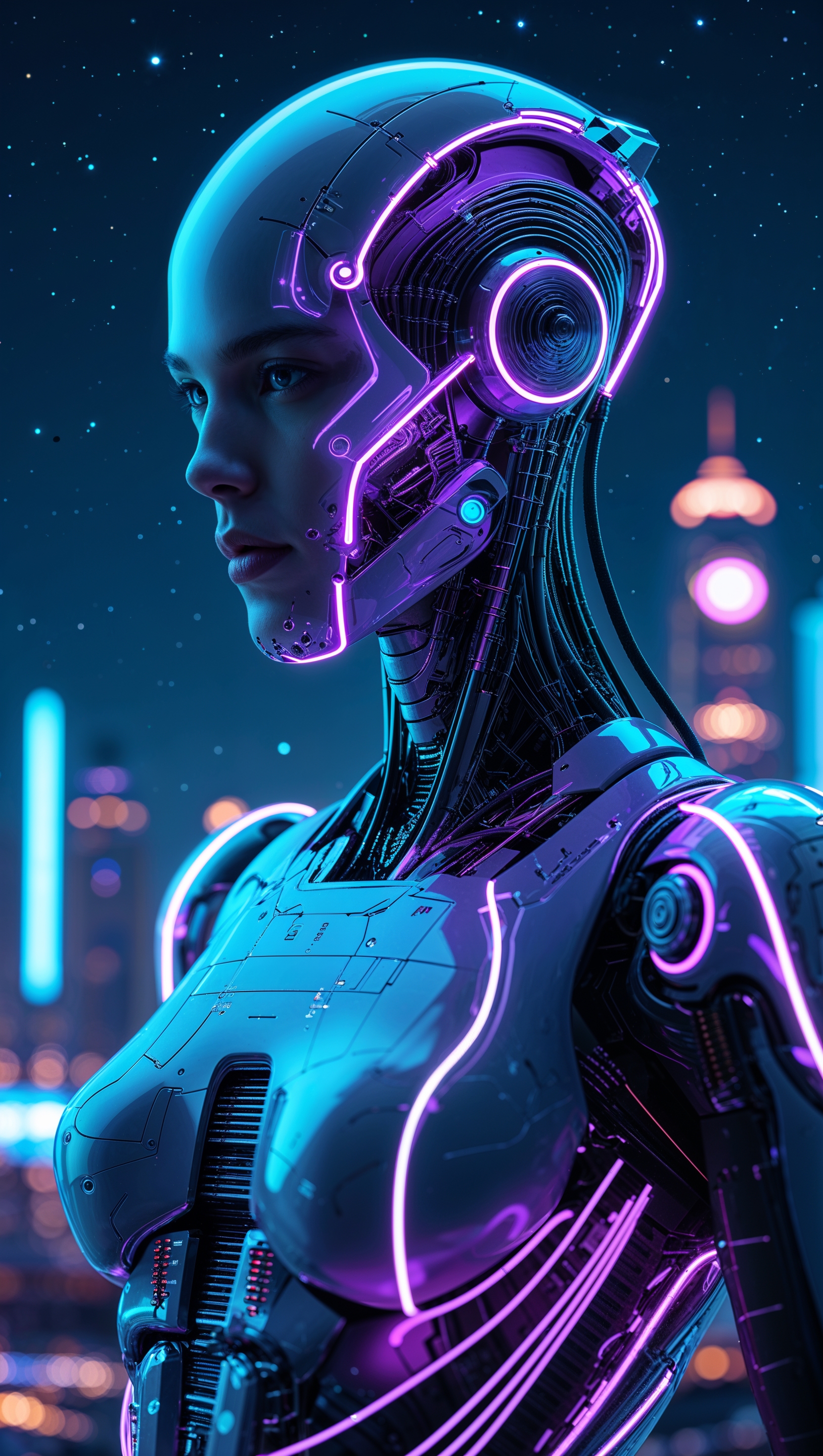 1664x2944 Cyborg with neon lights – futuristic iPhone wallpaper