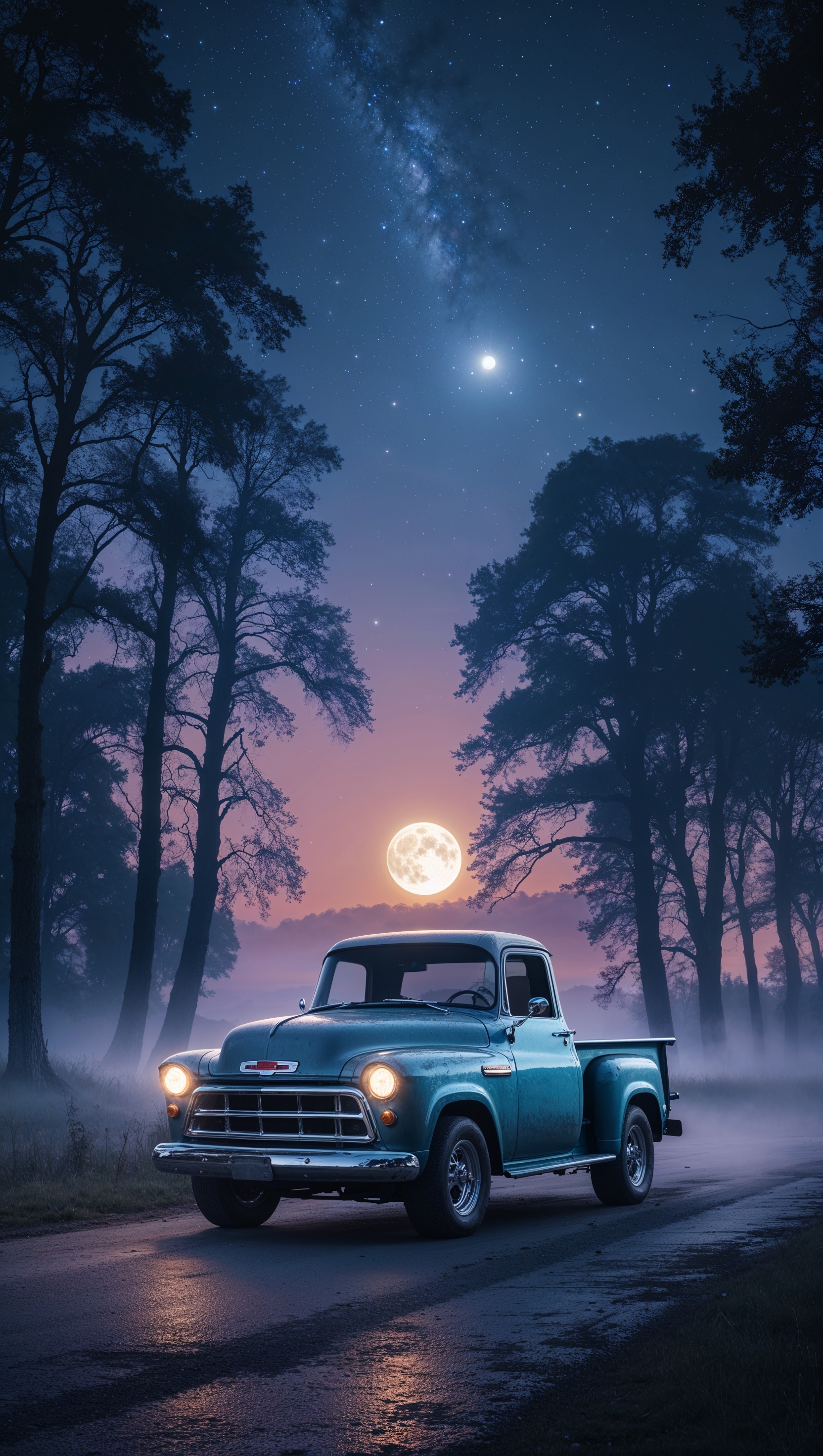A night scene with a Chevy truck under starry skies, peaceful mood, iPhone wallpaper 1664x2944 A night scene with a Chevy truck under starry skies, peaceful mood, iPhone wallpaper