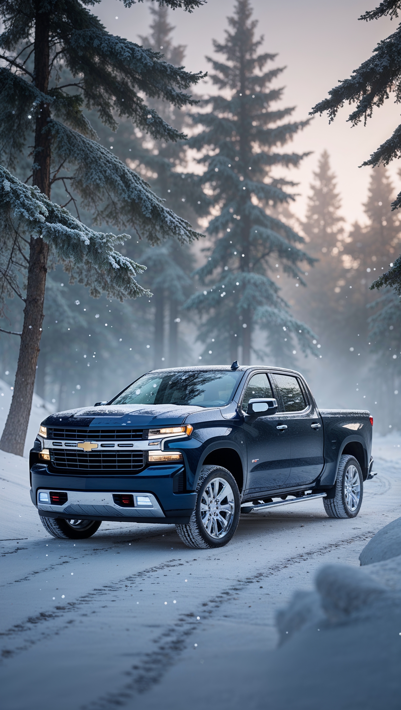 Chevy Silverado in a snowy forest, peaceful winter landscape, iPhone wallpaper 1664x2944 Chevy Silverado in a snowy forest, peaceful winter landscape, iPhone wallpaper