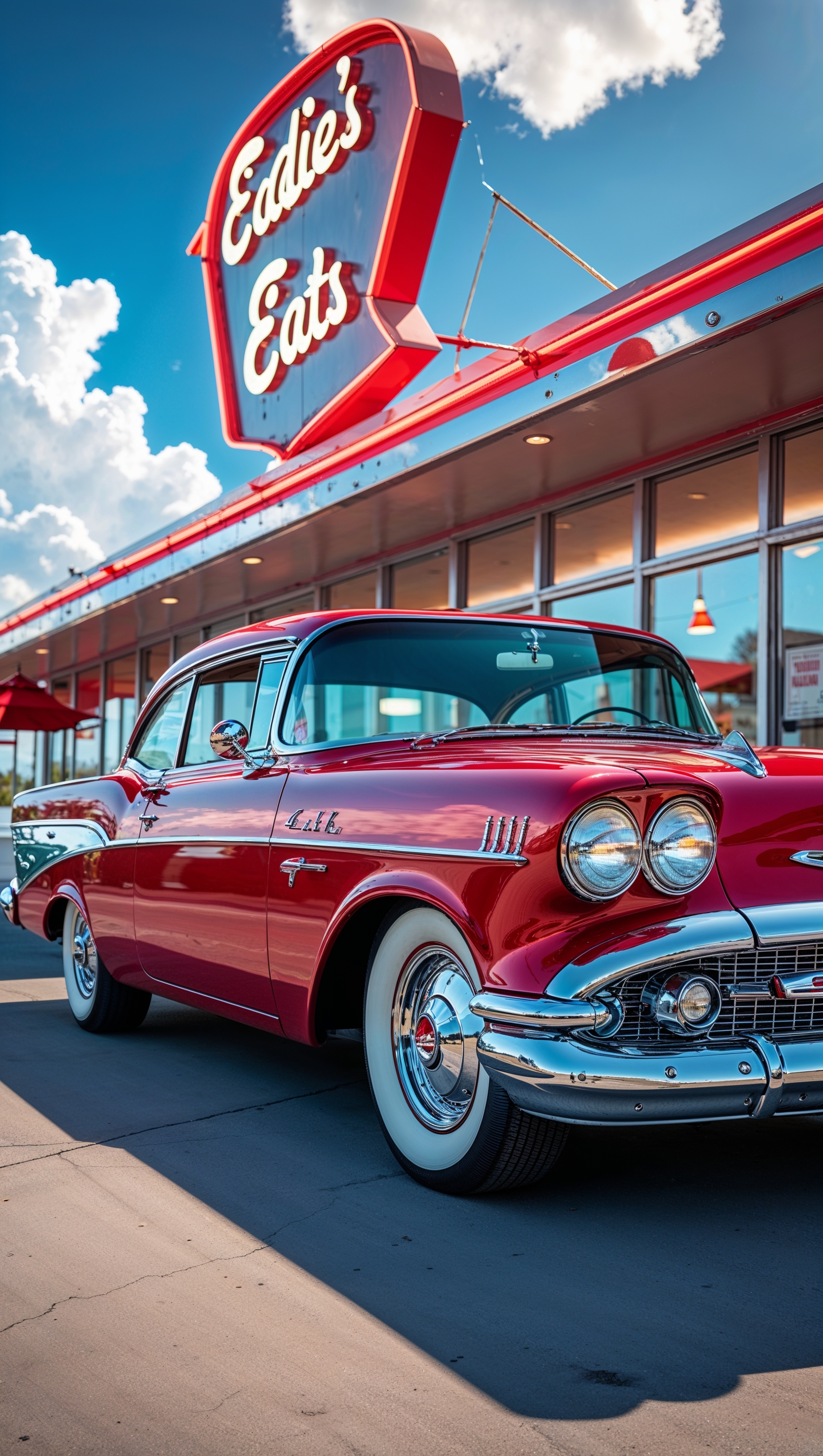 Vintage Chevy Impala parked in front of a diner, 1950s vibe, iPhone wallpaper 1664x2944 Vintage Chevy Impala parked in front of a diner, 1950s vibe, iPhone wallpaper