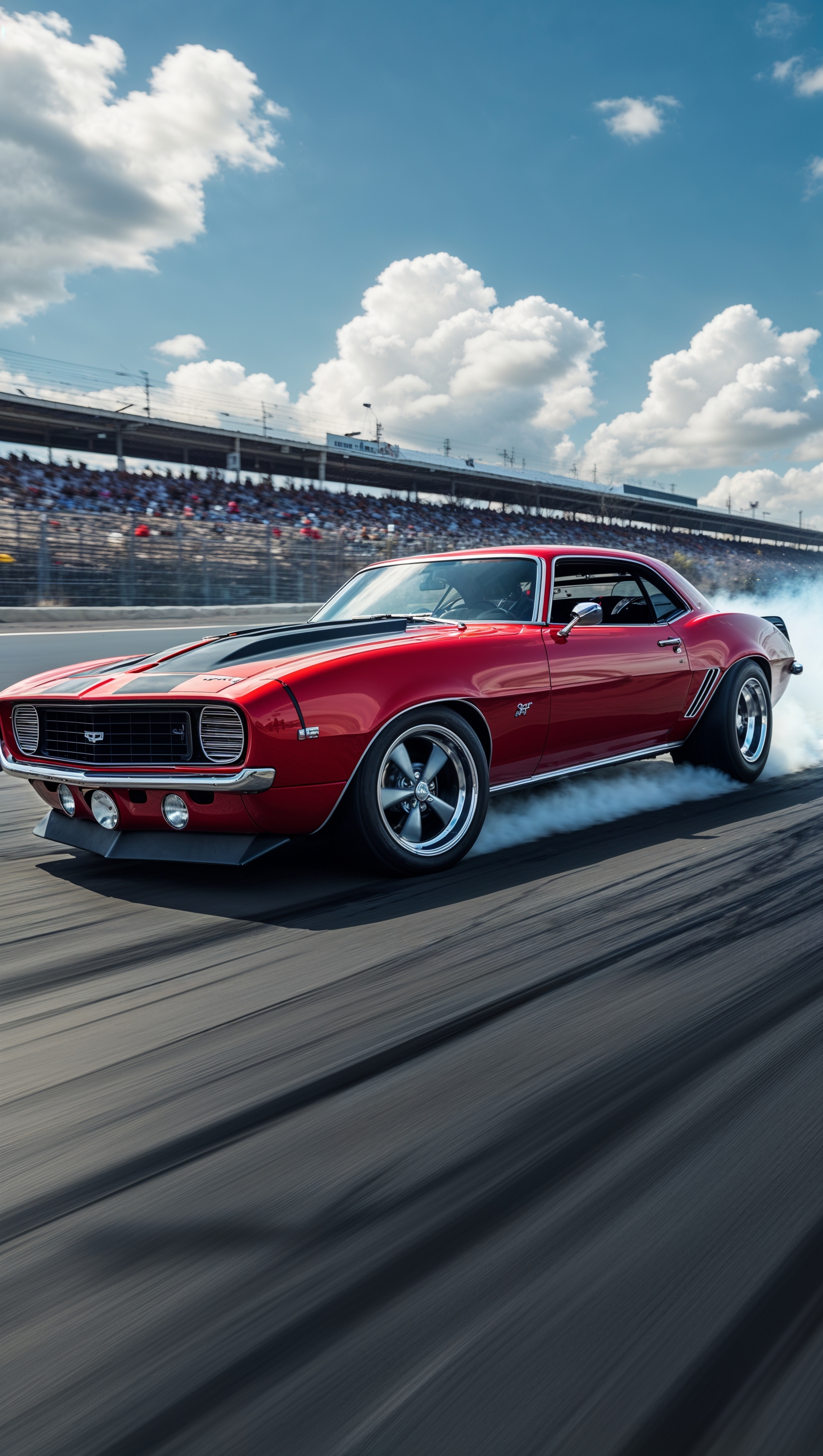 A Chevy muscle car drifting on a racetrack, motion blur effect, iPhone wallpaper 1664x2944 A Chevy muscle car drifting on a racetrack, motion blur effect, iPhone wallpaper