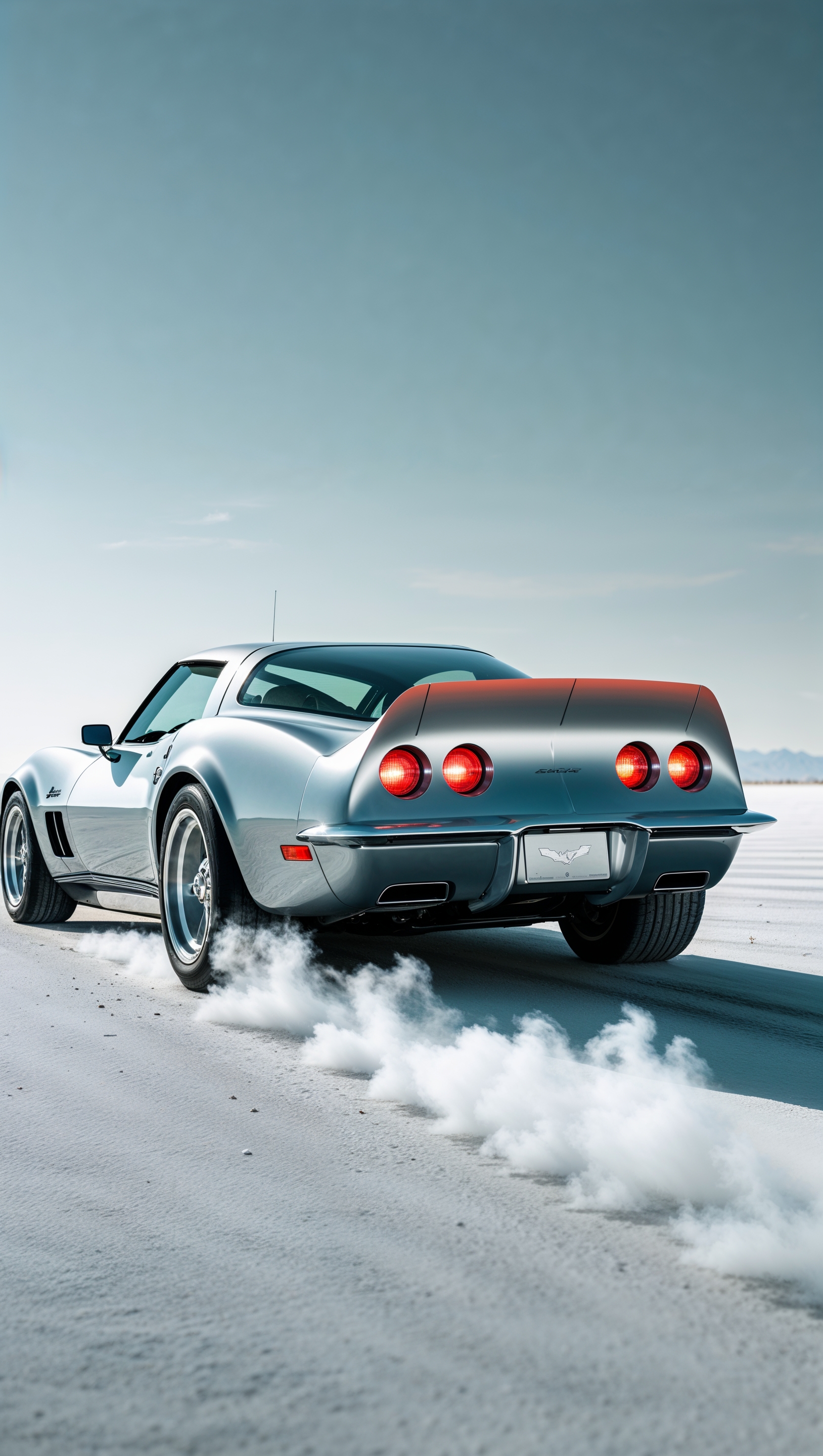 A Chevy Corvette racing on the salt flats, minimal style, iPhone wallpaper 1664x2944 A Chevy Corvette racing on the salt flats, minimal style, iPhone wallpaper