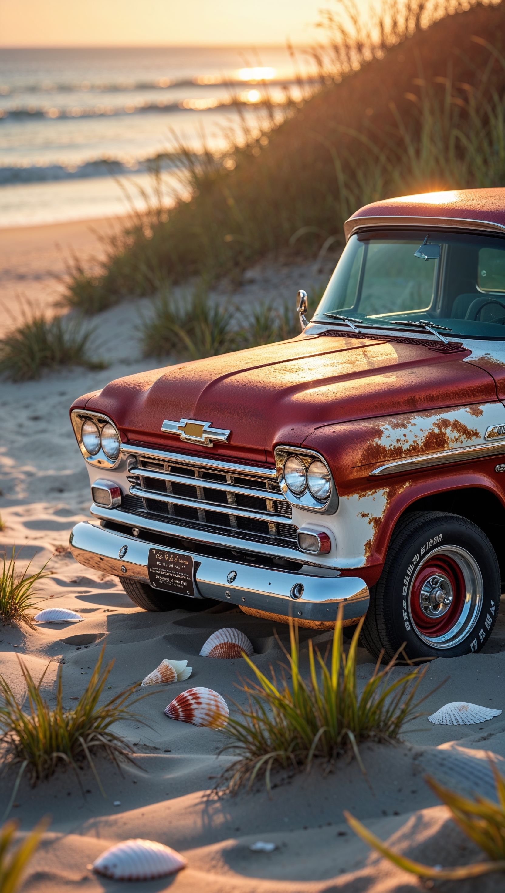 Chevy truck parked on a beach during golden hour, relaxed vibe, iPhone wallpaper 1664x2944 Chevy truck parked on a beach during golden hour, relaxed vibe, iPhone wallpaper
