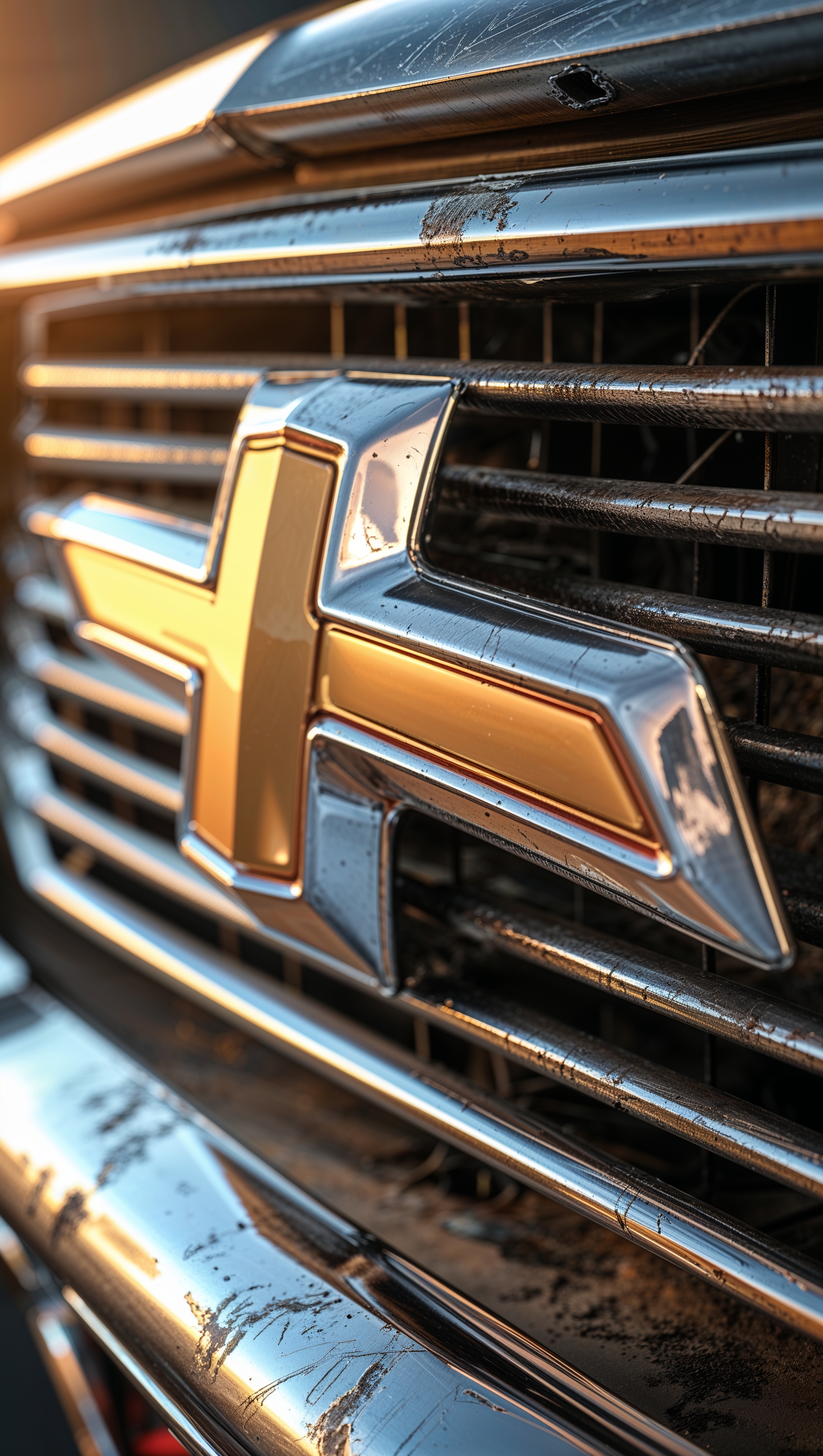Close-up shot of a classic Chevy logo on a chrome grill, vintage detail, iPhone wallpaper 1664x2944 Close-up shot of a classic Chevy logo on a chrome grill, vintage detail, iPhone wallpaper