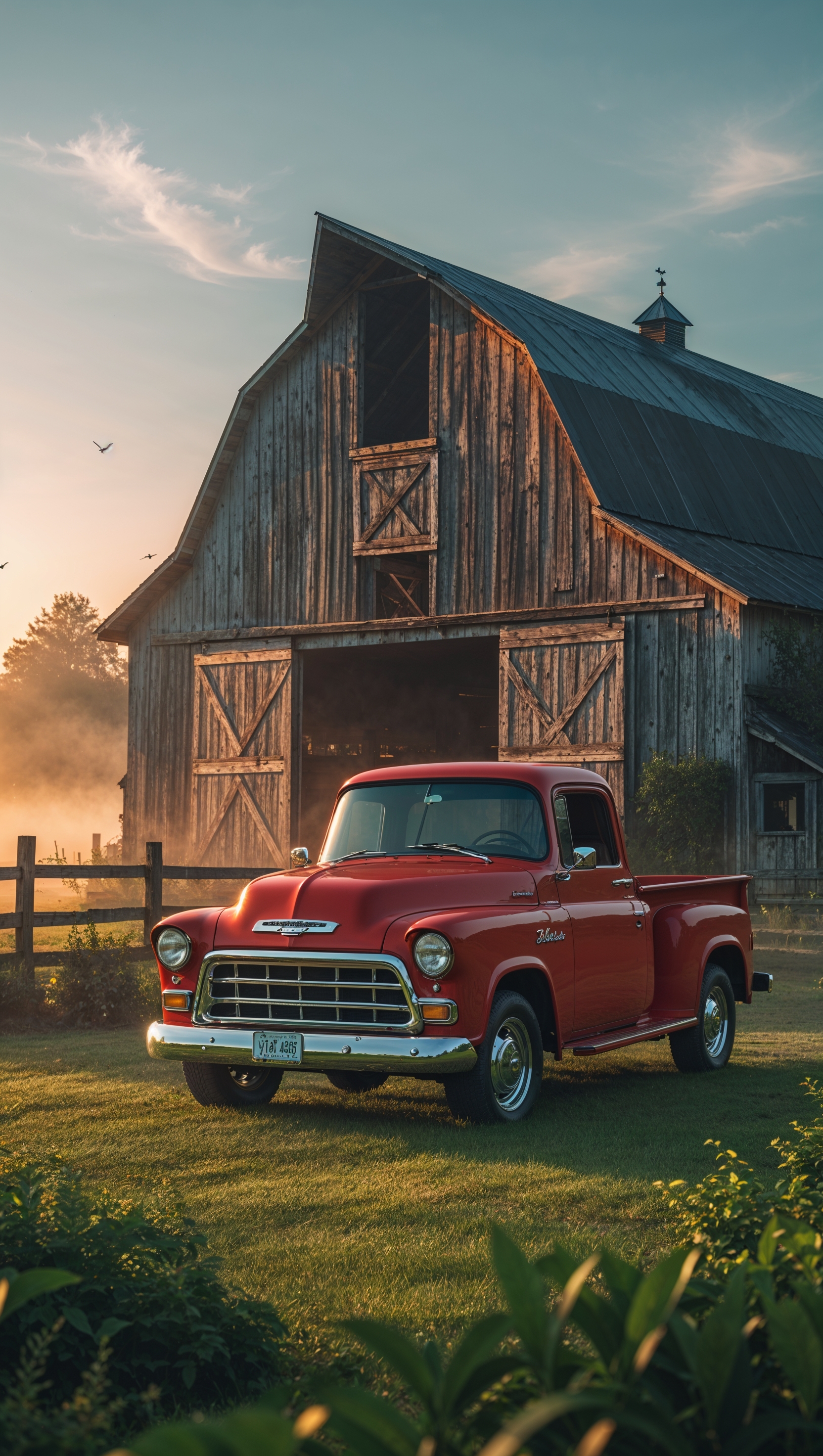 Chevy truck in front of a barn during sunrise, peaceful country scene, iPhone wallpaper 1664x2944 Chevy truck in front of a barn during sunrise, peaceful country scene, iPhone wallpaper