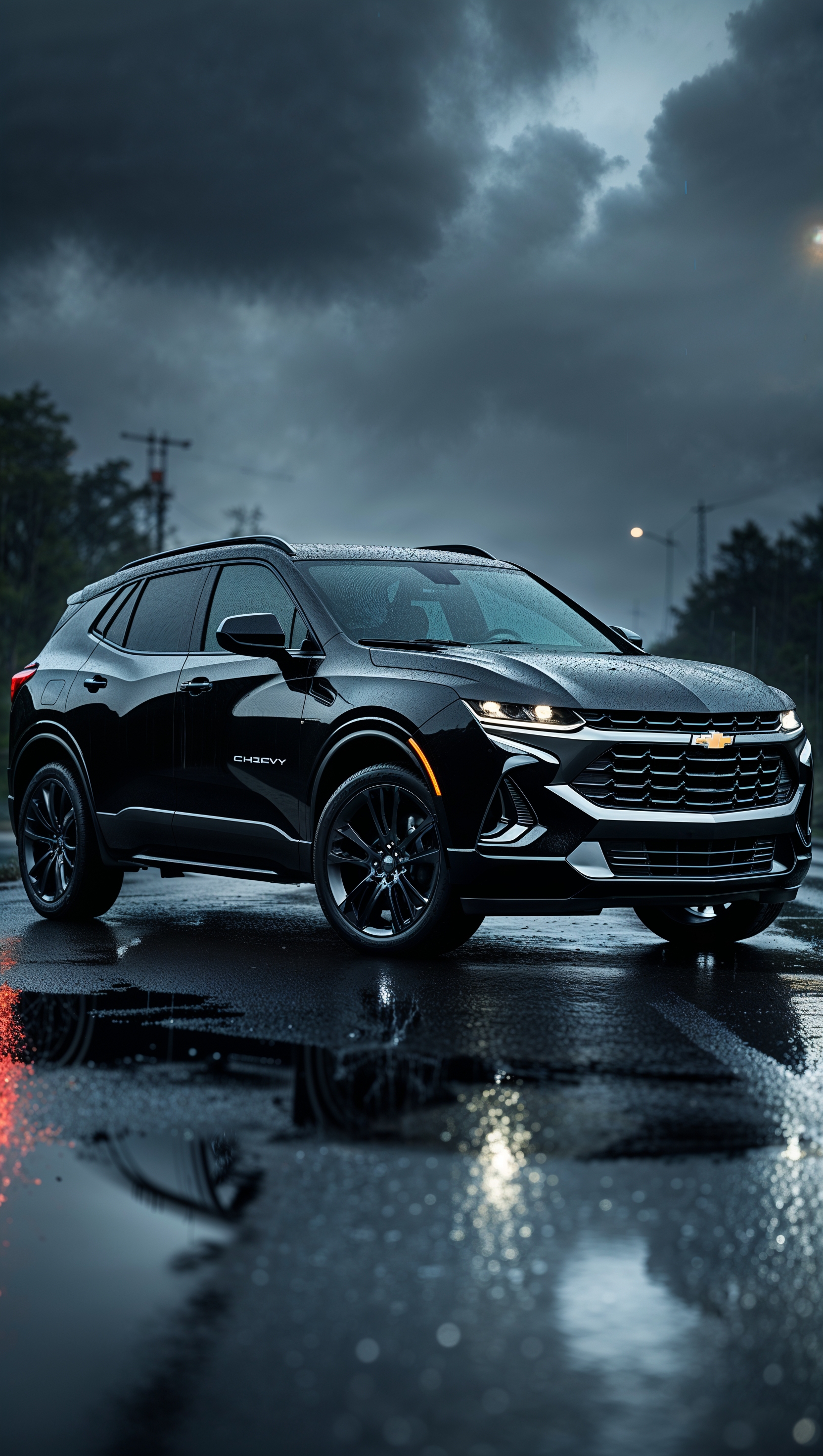 A sleek black Chevy SUV on a rainy road, dramatic lighting, iPhone wallpaper 1664x2944 A sleek black Chevy SUV on a rainy road, dramatic lighting, iPhone wallpaper