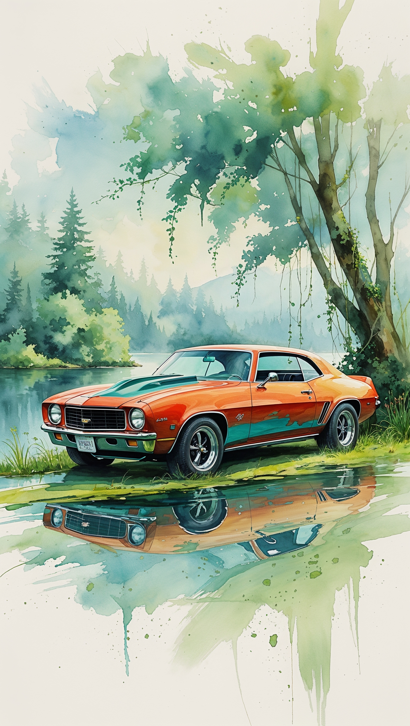 Artistic watercolor painting of a Chevy in nature, artistic background, iPhone wallpaper 1664x2944 Artistic watercolor painting of a Chevy in nature, artistic background, iPhone wallpaper