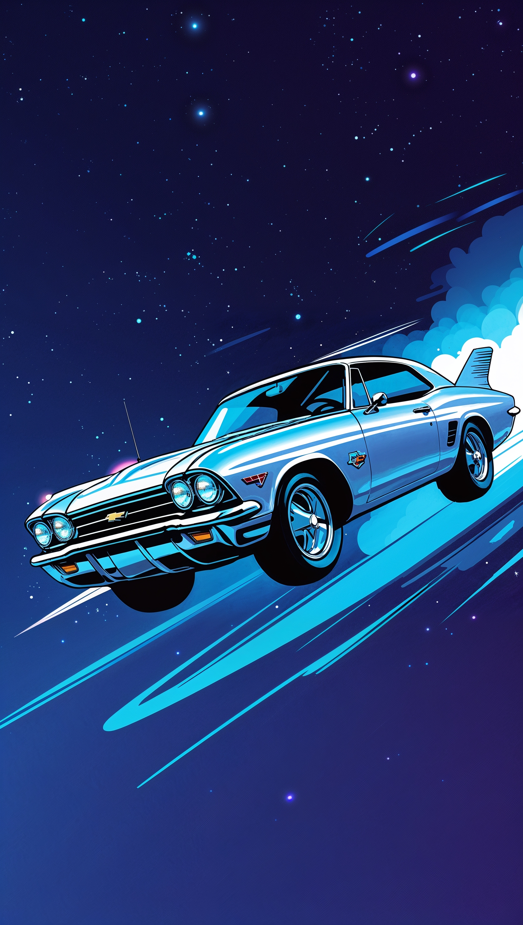 Retro-futuristic illustration of a Chevy flying car, sci-fi art style, iPhone wallpaper 1664x2944 Retro-futuristic illustration of a Chevy flying car, sci-fi art style, iPhone wallpaper