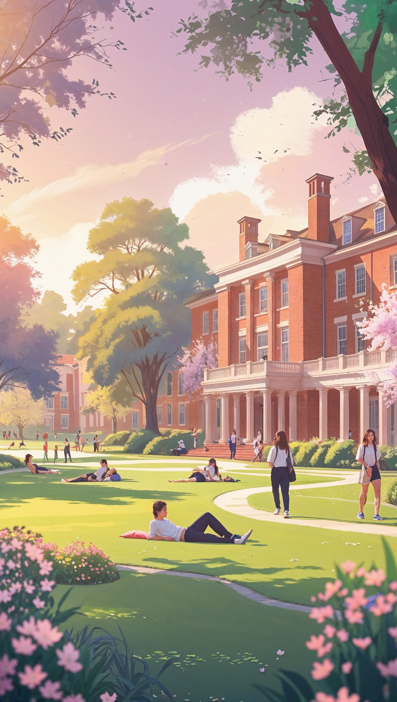 1664x2944 Create an iPhone wallpaper emphasizing the open campus environment, everyday scenes, and pastel coloring
