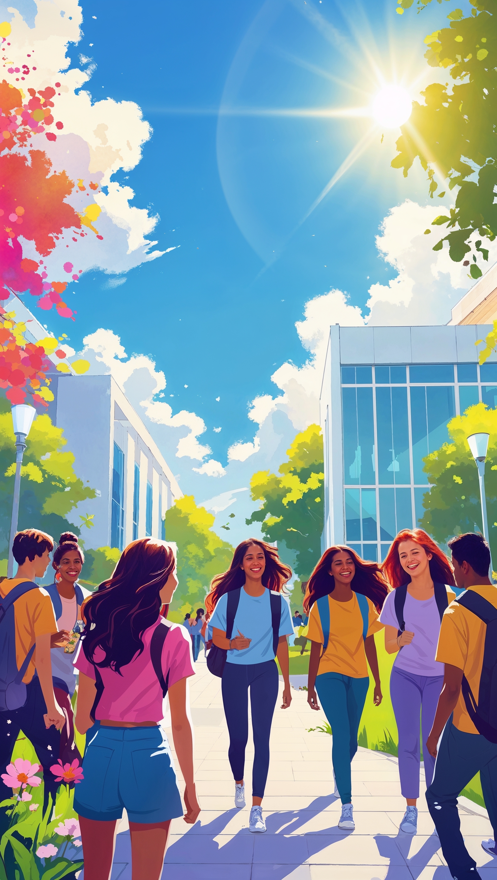 1664x2944 Design an iPhone wallpaper utilizing lighting effects and visual enhancements, emphasizing the energetic campus vibe