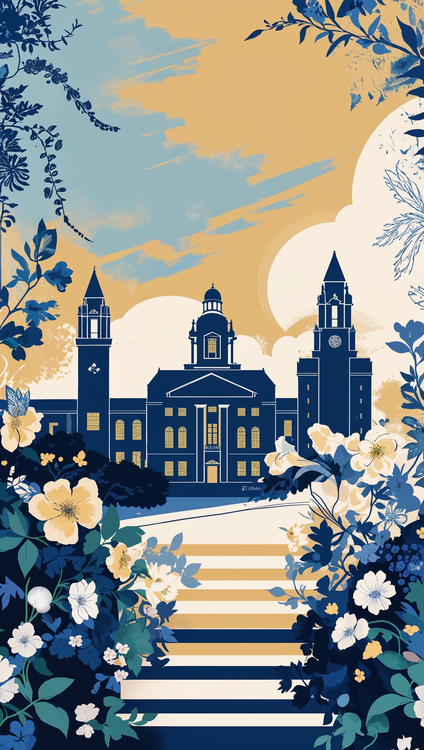 1664x2944 Create an iPhone wallpaper combining historical aspects of the university with contemporary style, using both matte and glossy colors