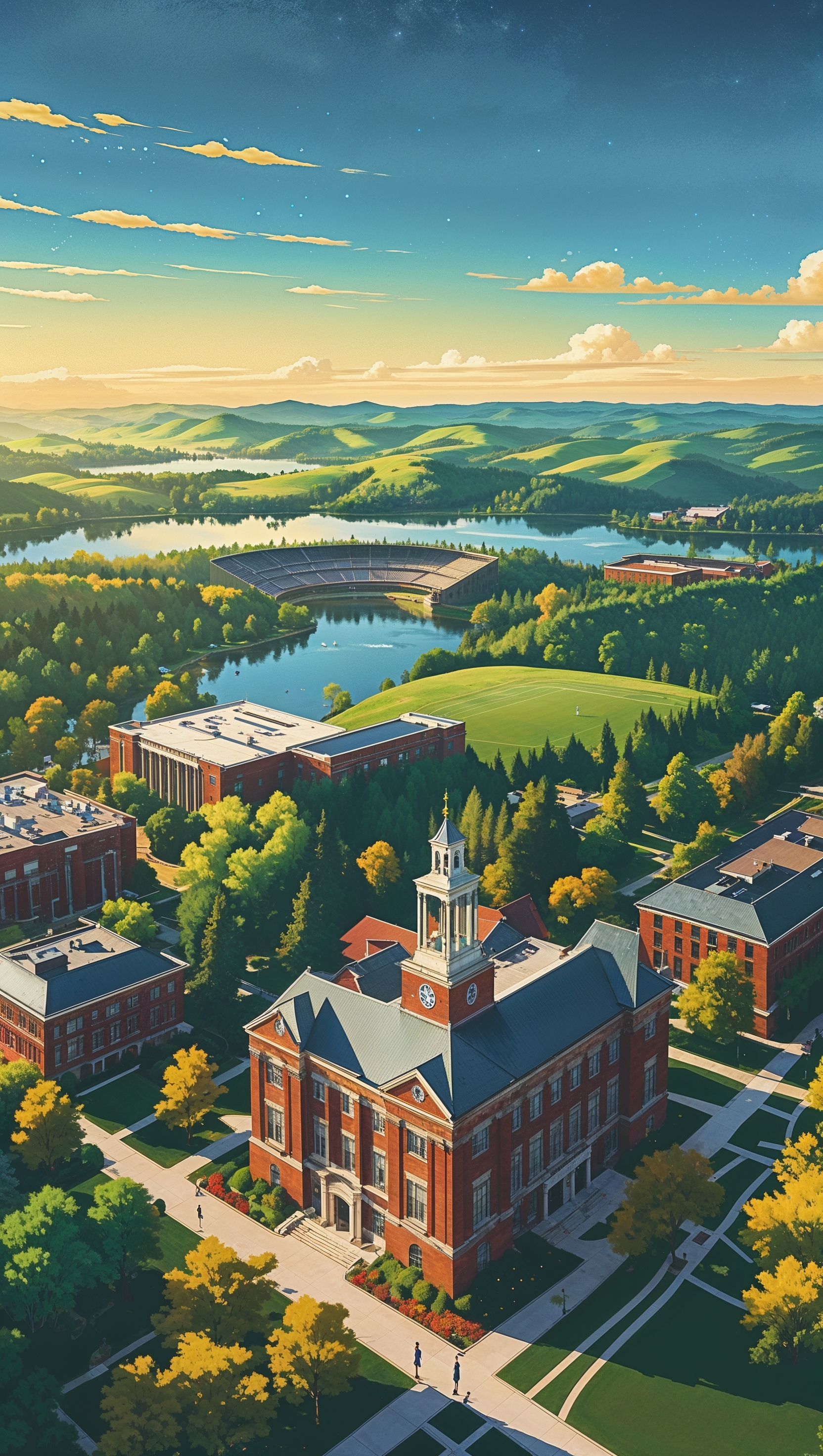 1664x2944 Create an iPhone wallpaper inspired by aerial views of Pennsylvania State University, blending broad landscapes with natural colors