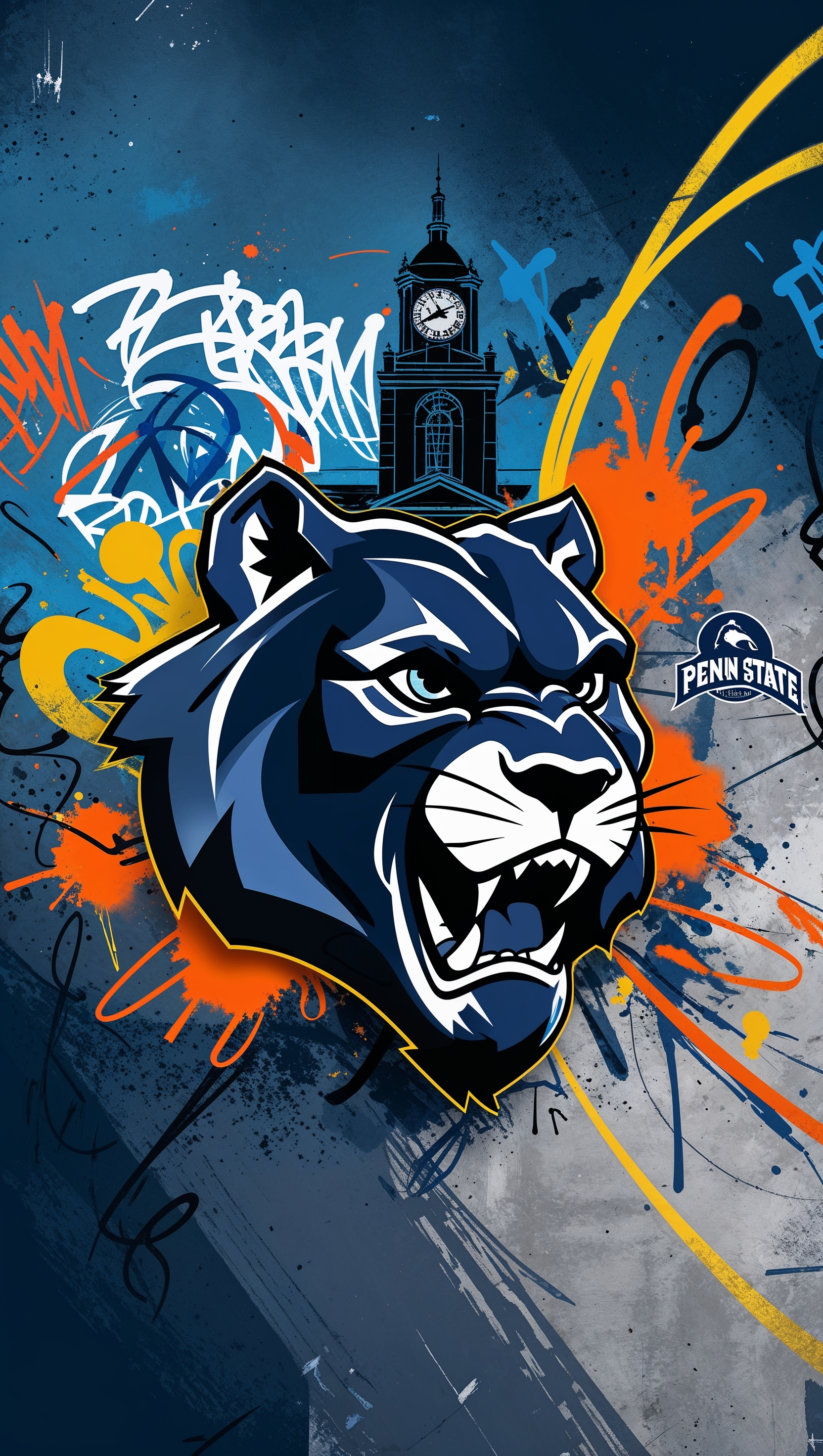 1664x2944 Illustrate an iPhone wallpaper inspired by graffiti and street art, mixed with Penn State University related elements