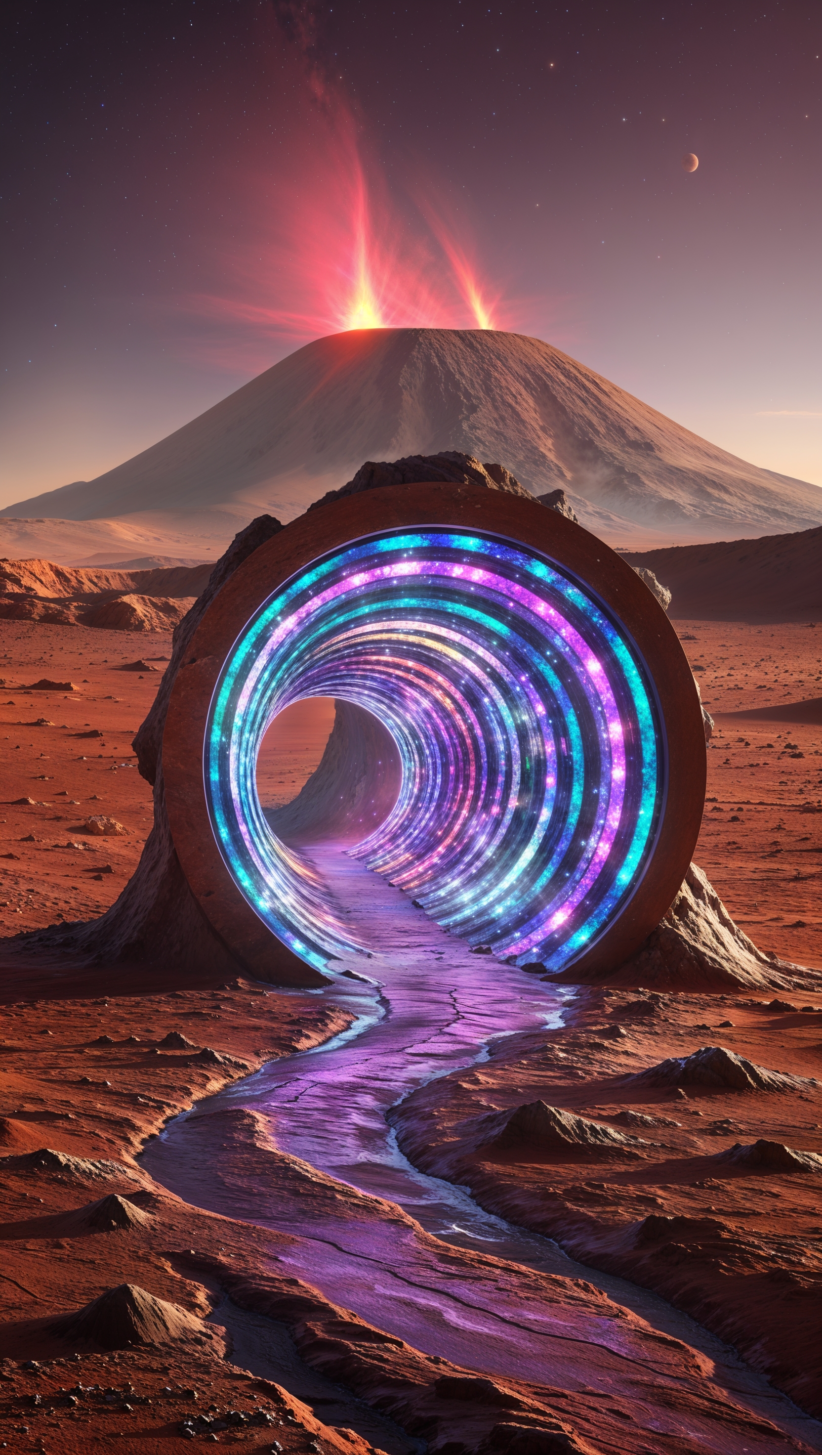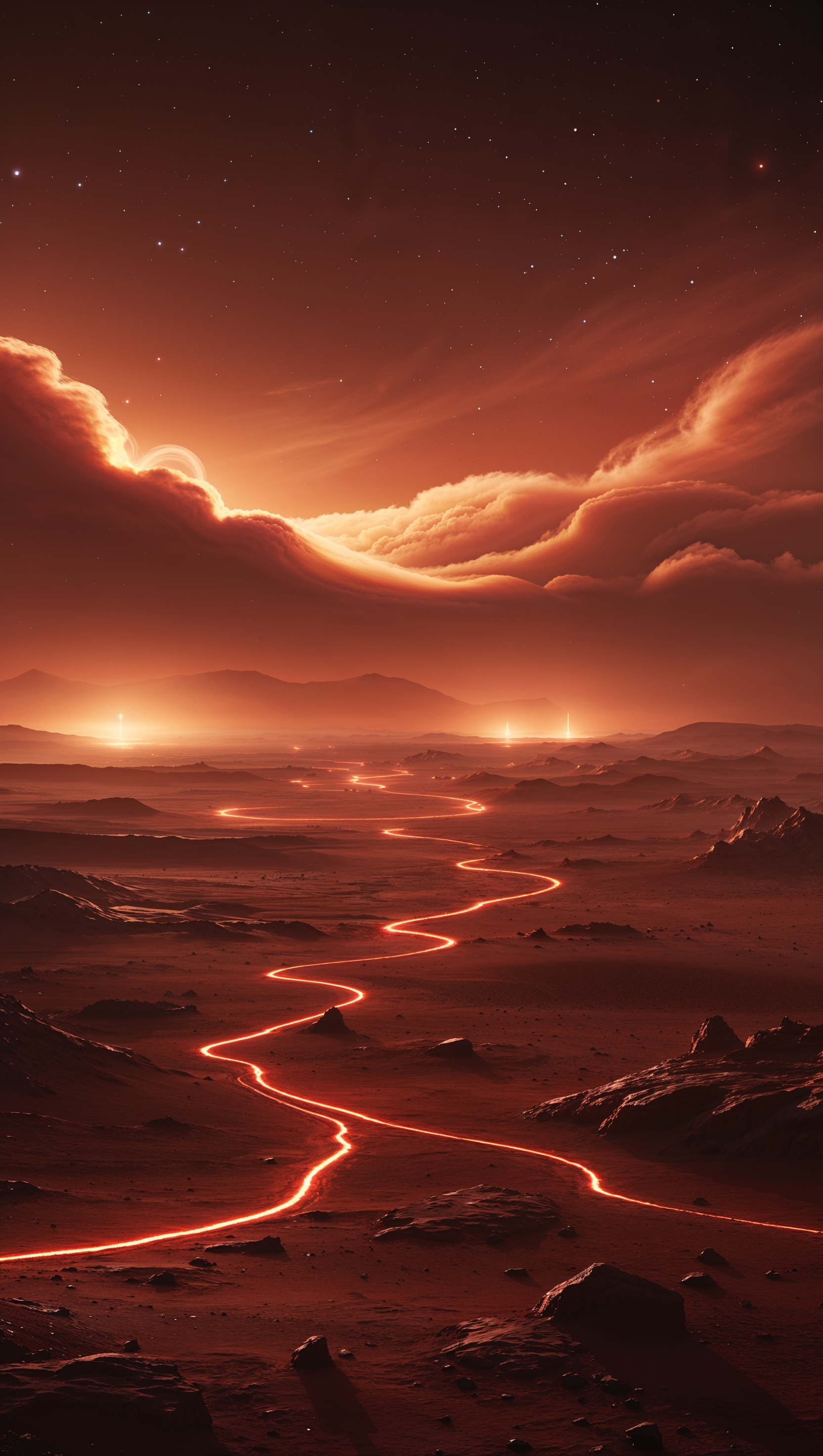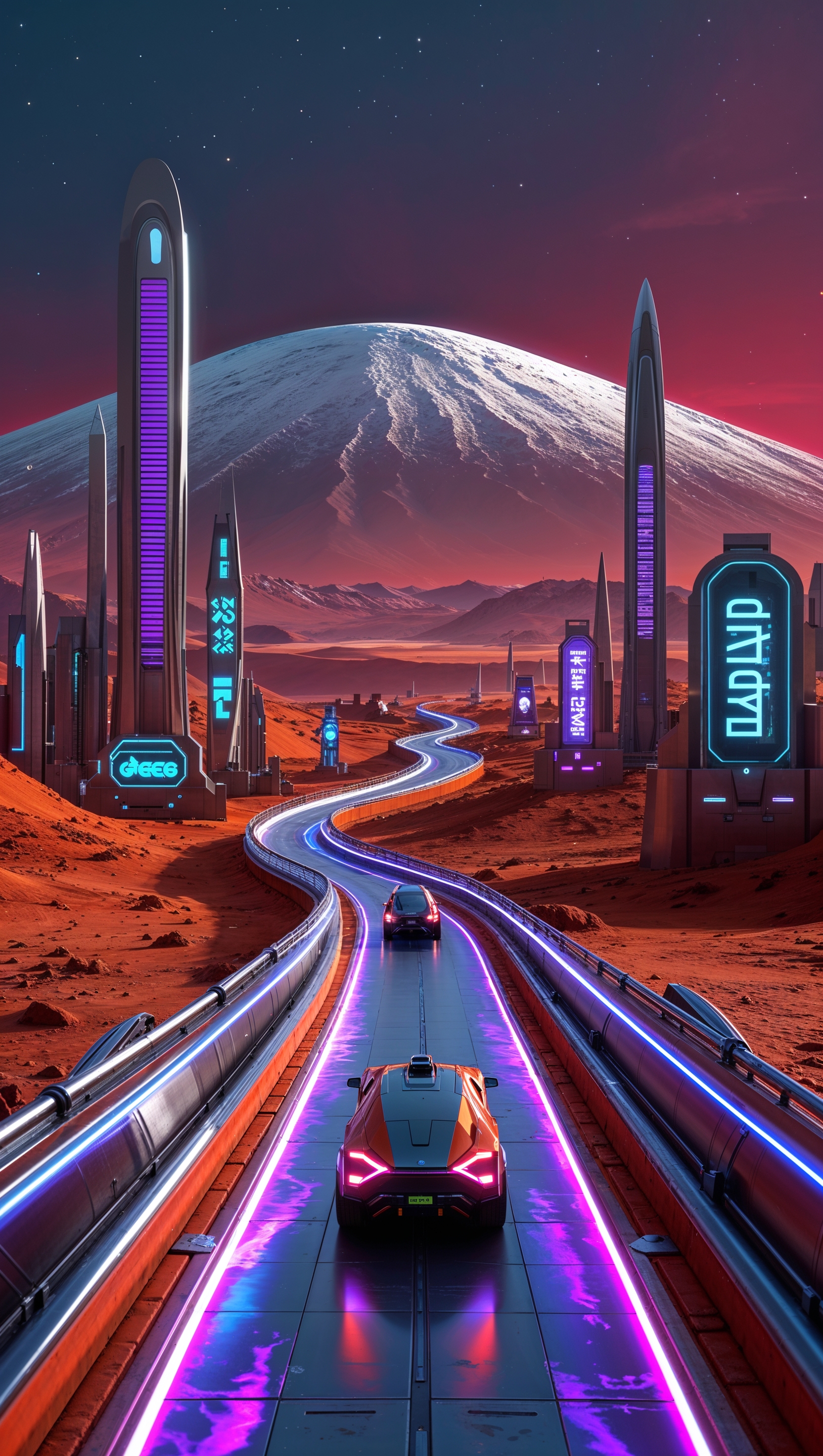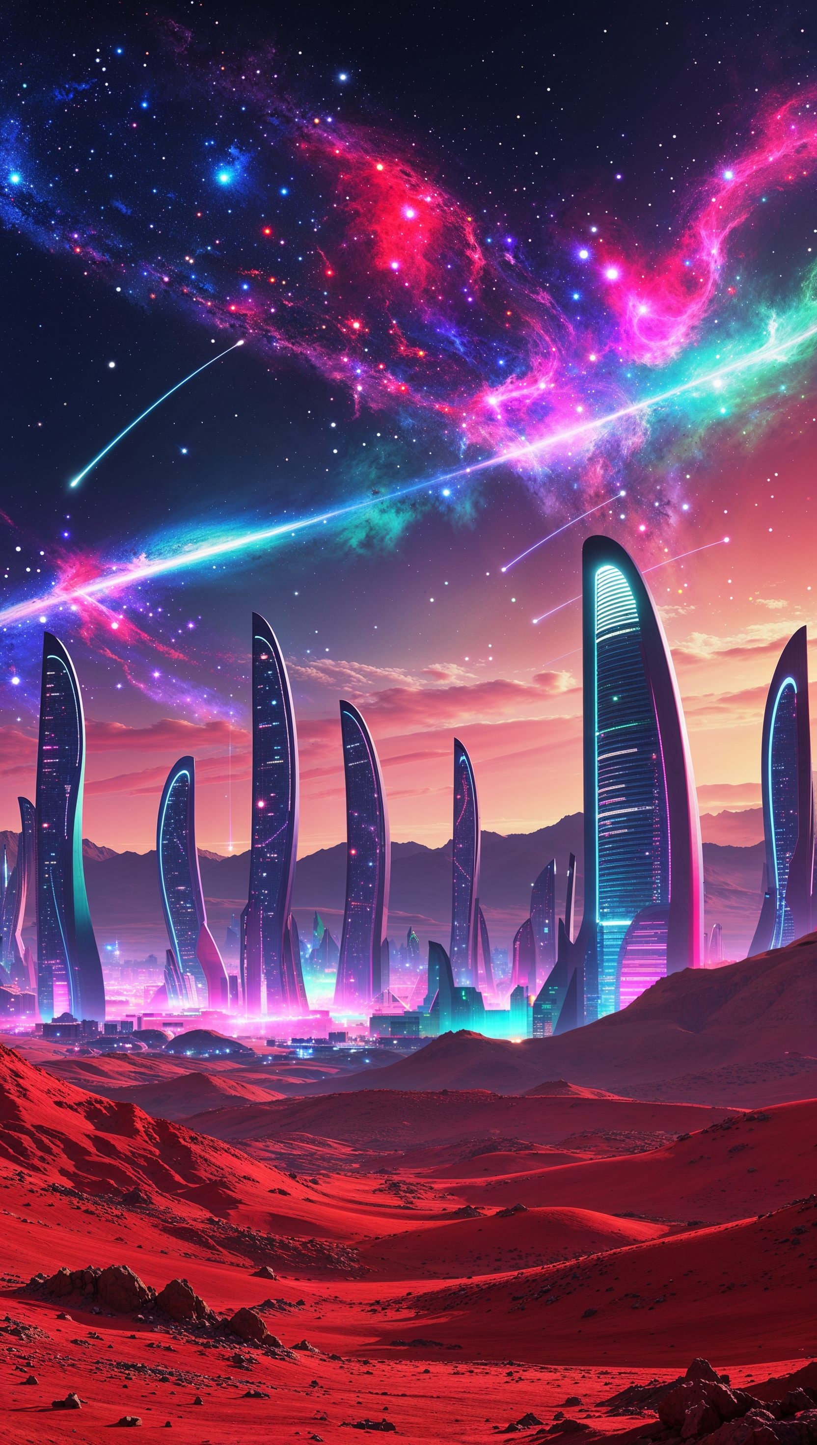 1664x2944 Cyberpunk-style Mars with neon-filled sky