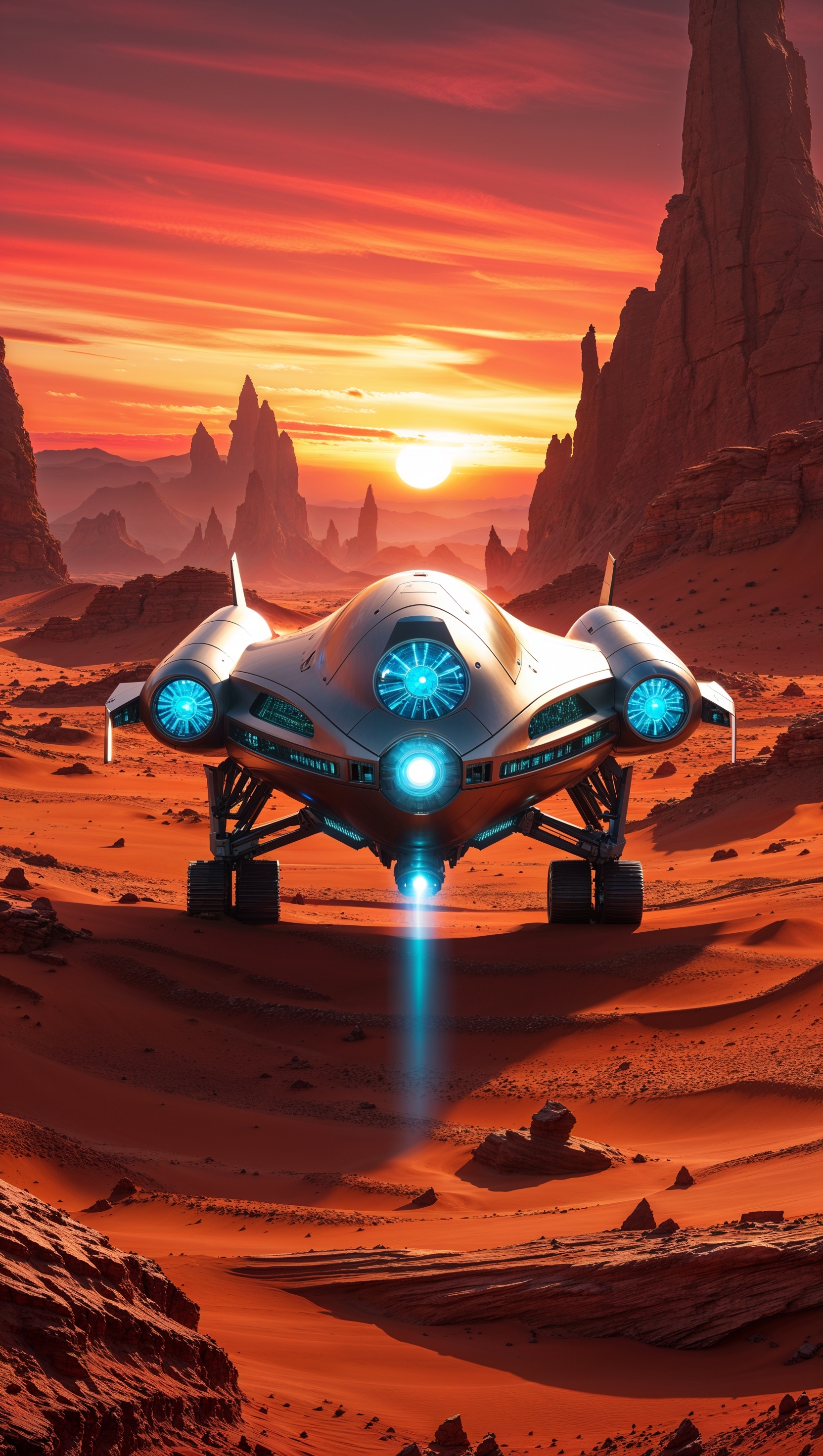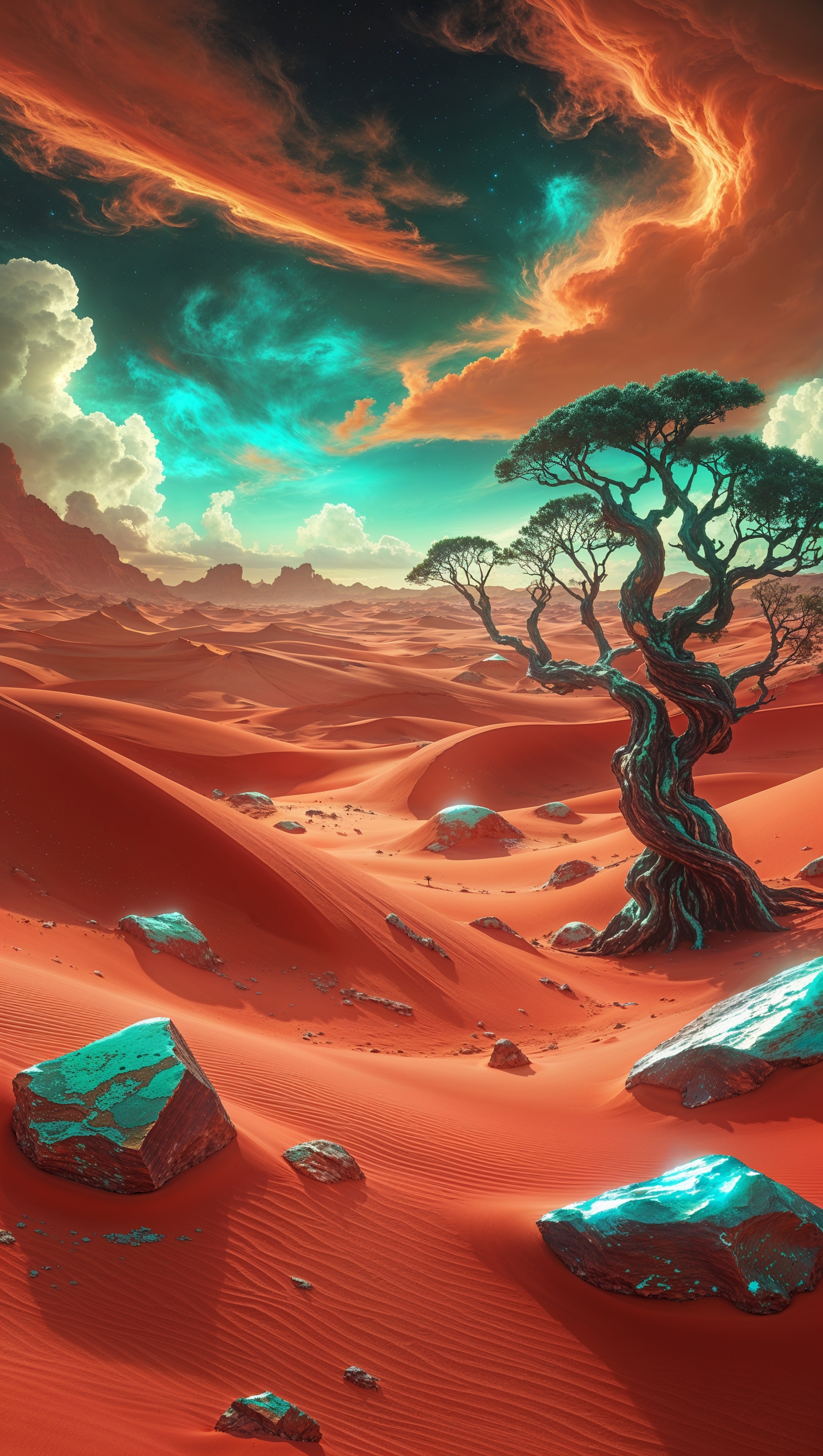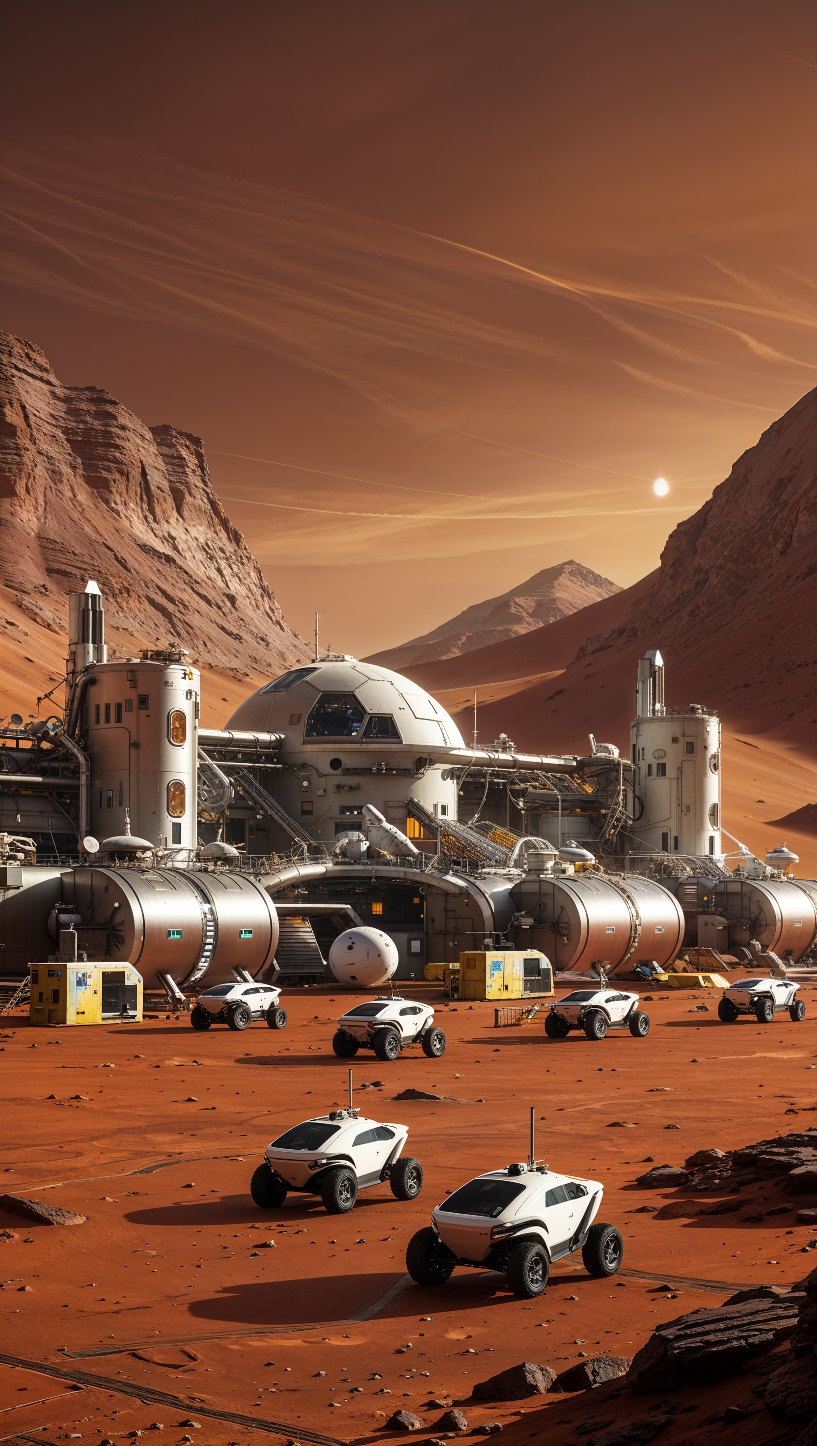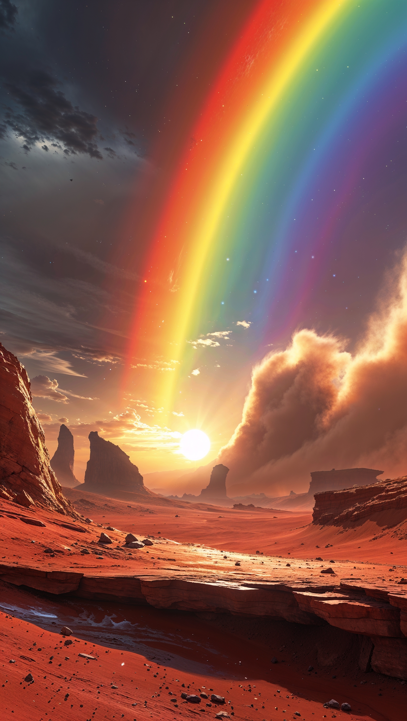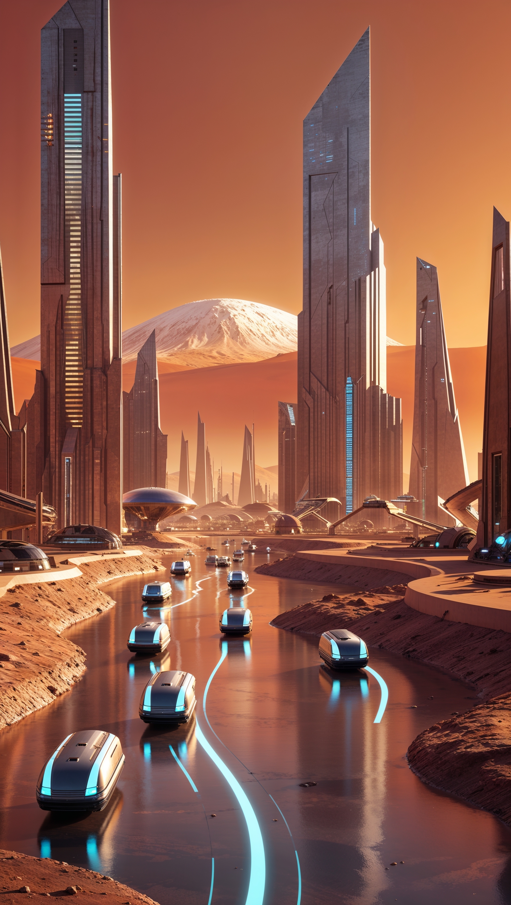 1664x2944 Cyberpunk-style Mars with neon-filled sky